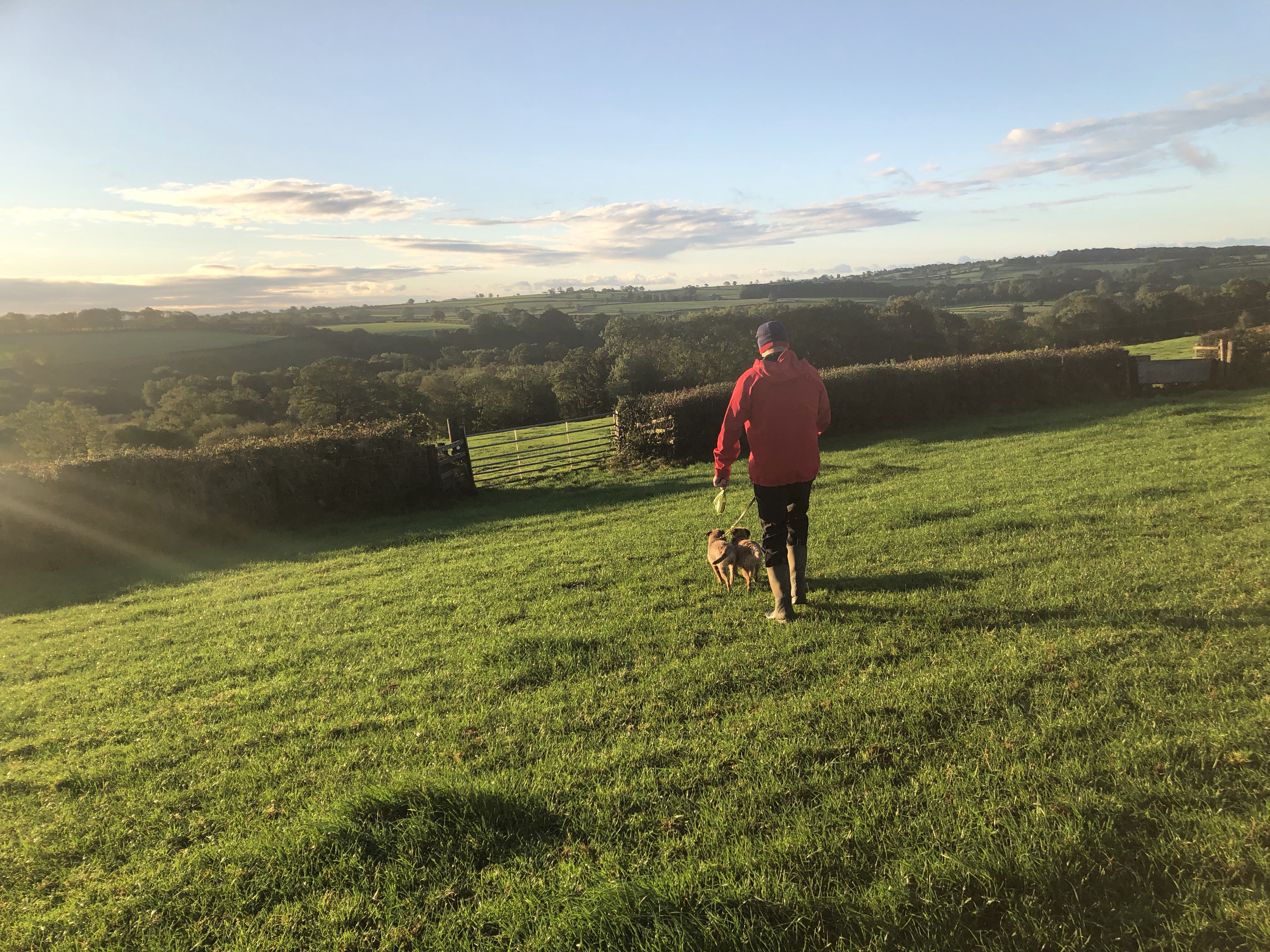 It was a really stormy night though with torrential rain and high winds all night. We were pleased to have put down the hydraulic legs, as even with those we were rocking. However this morning brought bright sunshine. We set off to explore some local public footpaths with the dogs, however these were obviously not well used in this relatively remote spot and we ended up having to retrace our steps when we hit a stile into a big patch of tall nettles. Still it was a nice 2 mile walk in some lovely scenery, even with the curious cows following us part of the way.