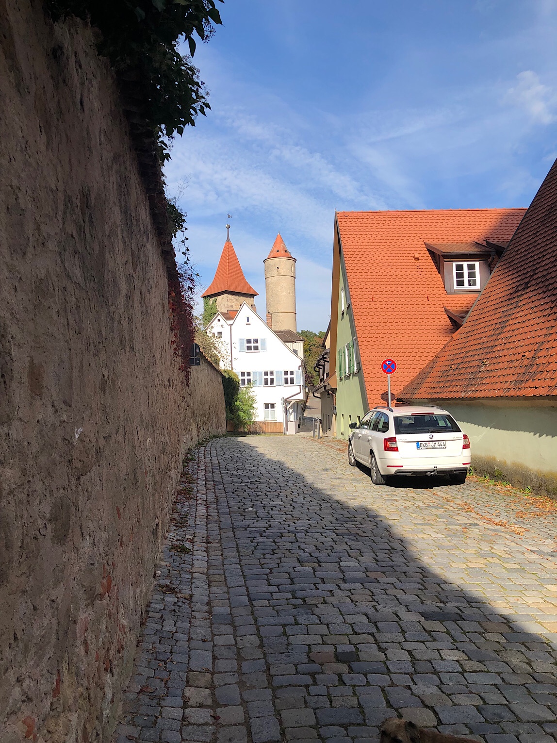 Today we moved another whole 30 minutes along the Romantic Road to Dinkelsbühl. Just a little bit of motorhome info for those that are interested, Nördlingen was 5€ per night, plus 2€ per 2kw for electric, water was free, as was black waste disposal. We had to buy a parking ticket and display in the windscreen/ passenger window in arrival. At Dinkelsbühl, you can pay for parking by card for everything else with coins. Dinkelsbühl is 6€ per night and the same as Nördlingen for everything else. It does mean you have to try and break a note everywhere you go and ask for coins for change. We have definitely concluded over the last few nights, where to be fair the temperature has pretty low (<7C), that LPG powered heating is considerably more economical than coin powered electric heating. After a night or two of the power tripping out during the night and causing the fridge to beep, we have converted to gas for fridge and heating.