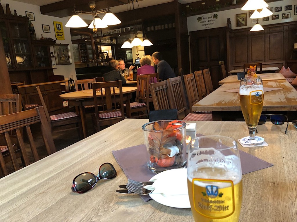 We bid a hasty retreat and opted for an early dinner in an authentic German Brew house just outside one of the gates into town. The waiter was sporting the traditional leather shorts and the barmaid the traditional medieval dress. The menu was of a similar style of traditional German Schnitzels etc, though even with my limited German we managed to get something to suit everyone. Once again Lizzy and Lola were welcomed in, we have not been refused entry at any restaurant or cafe with the dogs. They seem surprised sometime we even ask, suggesting the dogs are most welcome first! Border Terriers are relatively rare here and we do get quite a few looks. I even had a lady pull up and stop her car in the morning and excitedly start talking to me in German about our “Border Hunds”, greeting Lizzy and Lola very enthusiastically.not entirely sure what she was saying and the girls took their stardom as something to be expected 😎 as always.