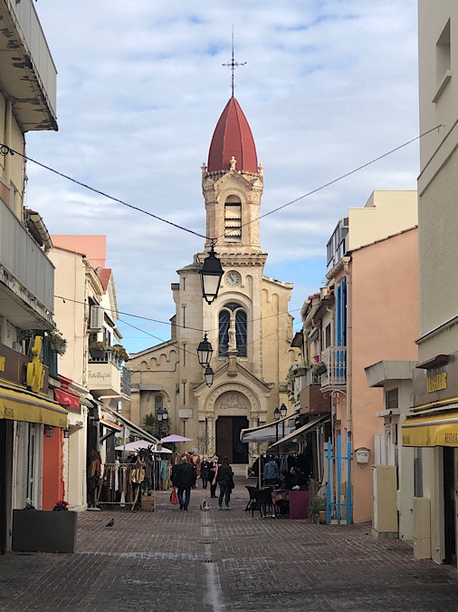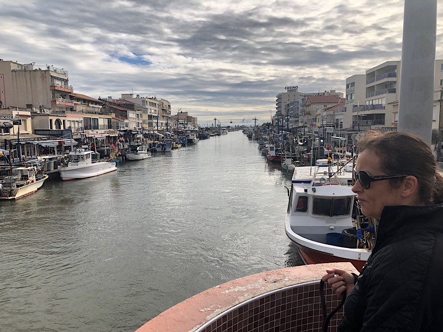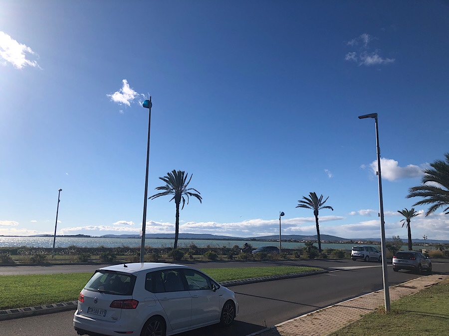 We headed out of Remoulin under grey skies, but hopeful of a change in the weather later in the day and headed to the coast. Neither of us had visited the French Mediterranean coast before and thought we ought to try. Therefore we picked a small resort town south of Montpellier, with an Aire at a yacht marina. Blue skies were beginning to peep through by the time we headed off the autoroute to Palavas-les-Flot, though clearly they had had the same heavy overnight rain as the roundabout to turn to the marina was flooded.