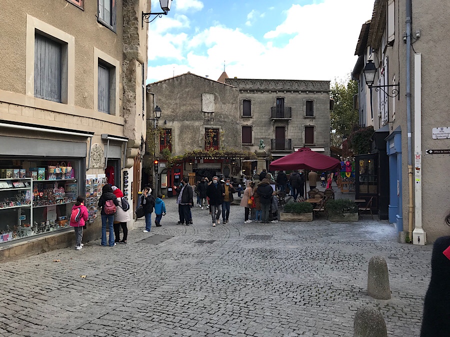 We walked around the town and the outer walls, but the biting wind discouraged us from a paid walk of the ramparts in favour of lunch in doors a quaint restaurant. We saw the famous Cassoulet advertised on many of the menu boards and Kev decided he needed to give it a try. So a leisurely lunch in the warm followed, as the Cassoulet needed extra time for cooking. Kevin confirmed it was well worth the wait.