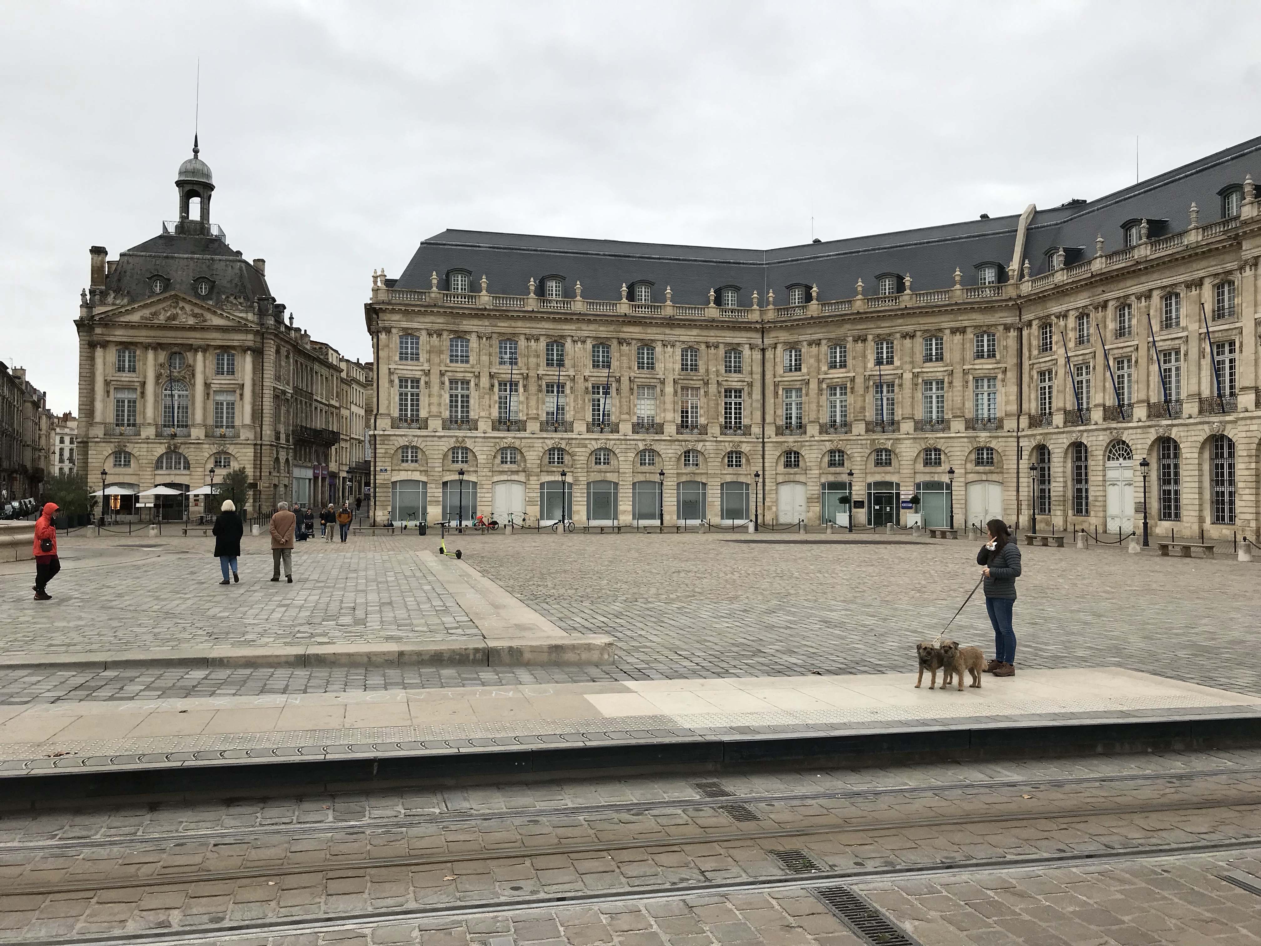 Therefore, Sunday morning we headed off to the tram with Lizzy and Lola, deciding this would be a more relaxing option than having to worry about 2 electric mountain bikes locked up in a city centre. The only drawback being having to avoid the crowds at the Matmut rugby stadium, which is our nearest tram stop. All was quiet when we headed through, although the police road blocks and crowd fencing suggested the fun to come. A very simple, fast and efficient tram journey into Bordeaux centre, taking about 20 minutes. It was filling up quite a bit with what looked to be locals by the time we got off even though it was a Sunday. Interesting to go through the suburbs, lots of apartments as it seems everywhere in France, quite a lot of innovative new designs but nonetheless pretty high density living.