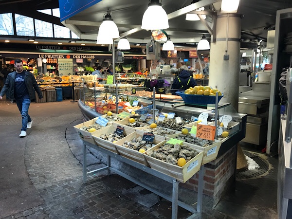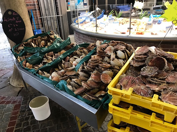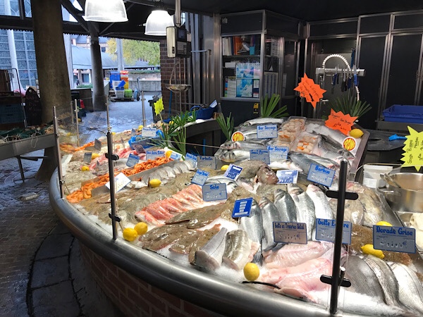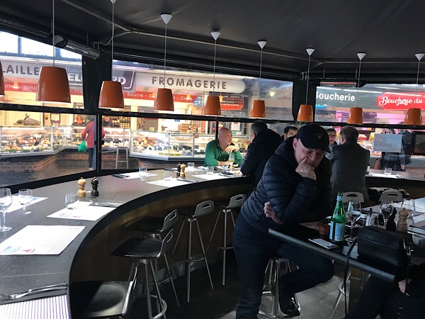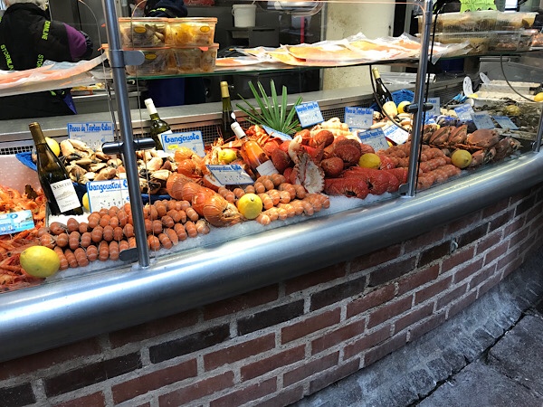 I have spotted a top reviewed fishmongers with attached restaurant bar the Comptoir des Halles in the market and Kevin is keen to try. The fishmongers is amazing and even Kevin, who is an ex-fisherman has never seen such a great display of fish. We get one of the last spots at the seafood breakfast bar type arrangement and Kevin chooses between the seafood feasts on display. He is very happy as he declares it is one of the best he has had in France so far, high praise indeed after our extensive research in this area!