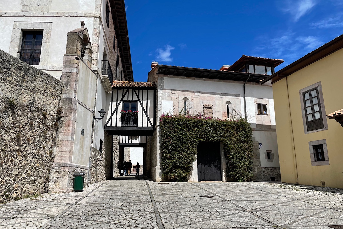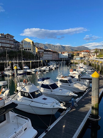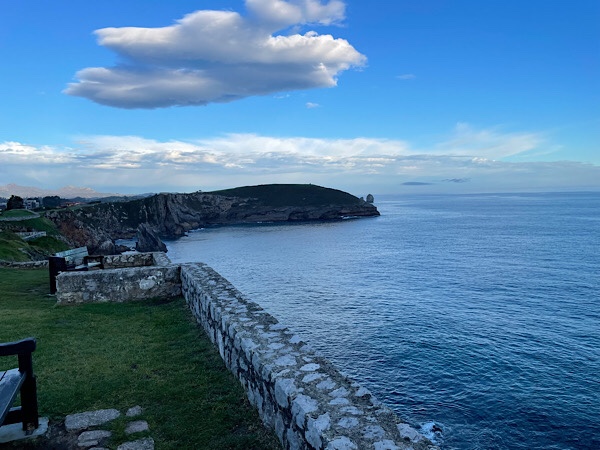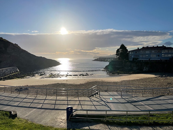 Our morning walk this morning took us along the coastal path, looking out at the calm blue sea with fishing boats bobbing around in the distance. The walled walkway along the coast took us all the way from our campsite to the beach at the far end of Llanes. We arrived in time to see the sun hit the walls of the Palacio de los duques de Estrada which dates from 1611, though there are town walls which date from 1200 in this quaint little town.