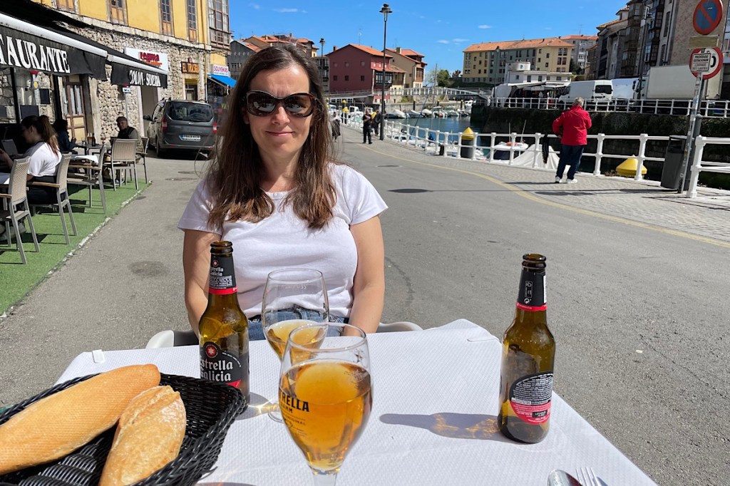 We then headed out for a spot of lunch. The many outdoor dining spots through the town were filled with people. Though they mostly appeared to be drinking wine etc. perhaps 1.30pm was early for Spanish lunch. Anyway we managed to get a nice spot with a bit of sunshine by the marina. I ordered the mushrooms and patatas bravas and the waitress actually asked if I was vegetarian. I am still unsure the expression she used and had to use Google translate to understand and said I was. Ah she said, “sin jamón” (without ham) I agreed. I was so taken aback that the concept of vegetarian was not only understood but actually recognised. It is clearly not part of the culture here, which I understand entirely and generally “get what I am given”, which generally means even vegetarian sounding dishes like mushrooms or mixed salad include meat, being insufficiently rigorous in my adherence tone content to pick it out. Though I did later realise the dogs had missed out on their usual treat as a result.