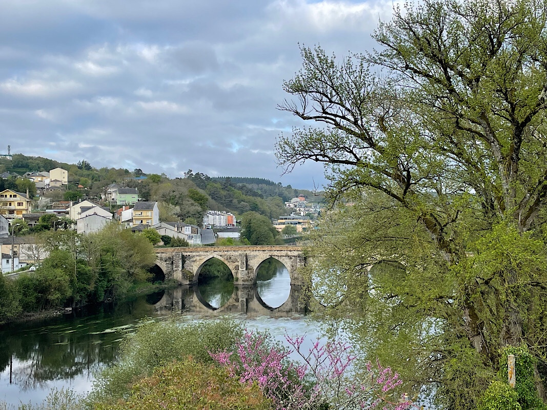 After breakfast it was time for some provisioning so we head to the large Carrefour supermarket which was quite close. This was our favourite supermarket brand in our sailing days and we were keen to revisit. It looked to be a pleasant walk to the supermarket via the old Roman bridge over the river Minho.