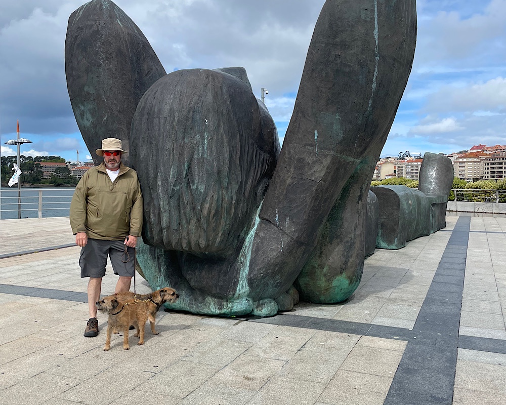 In the afternoon the sun finally started to show itself between the clouds and we decided to walk round to Sanxenxo, having only made it to Portonovo yesterday. It was a nice 2 mile walk along the coast looking over the lovely beaches and marinas, following the long boardwalk. As in a lot of Spain, there was some interesting sculptures.
