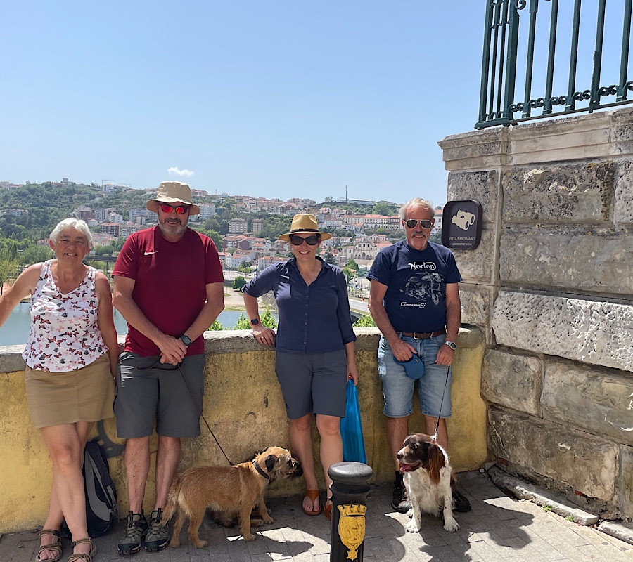 We drove down through the trees and lakes of the lower ground arriving into Coimbra around lunchtime. My parents and Molly their dog were there to meet us at the free carpark by the Santa Clara bridge over the Mondego river from the city centre. After a quick catch up looking at our new motorhome we head into the city to see some sights and have some lunch, plus perhaps a beer or two. It was now lower into the low 30’s degree C and all of the dogs were not enjoying the stroll. It was cooler walking over the bridge but soon heated up in the narrow streets of the old city. Consequentially we chose the nearest restaurant with shade for lunch rather than the best.