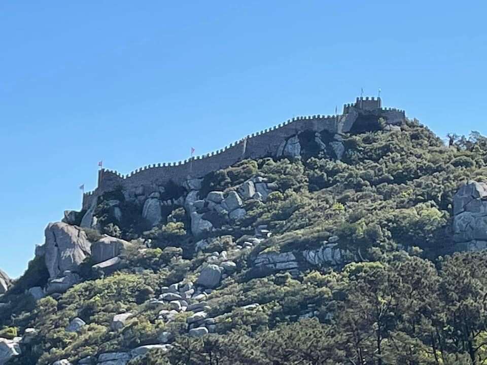 First stop was view point to look up at the Moorish Castle and the Pena Palace. The road up to this with its hairpin bends up the hillside was apparently a rally circuit, until a bad accident in the 1960’s on the bend next to the mansion that the Roman Polanski thriller Ninth Gate with Johnny Depp, was was filmed. Whilst we stopped at the viewpoint, David gave us quite an education into the Portuguese monarchy. The Pena Palace was built by Dom Ferdinand II, prince consort to Queen Maria II of Portugal. Dom Ferdinand being of the Sax-Coburg dynasty, so prevalent in European royalty in that era, first cousin to Queen Victoria and Prince Albert. The Moorish Castle dates from the 8th and the 9th Century, it was later taken by the Christian forces in 1147, but later abandoned when the defences moved closer to the coast. There was also a monastery on the site of the Pena Palace since the Middle Ages. It was visiting these ruins which enamoured Ferdinand to the location and the fabulous views.