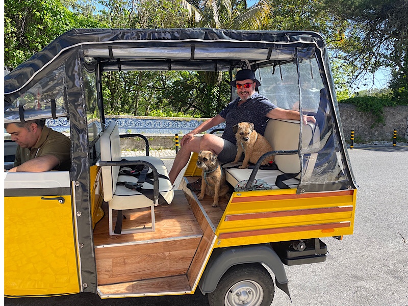 Today we had booked in for a half day tour from Sintra to Cascais via Tuk Tuk 🛺 So this morning we went to our prebooked Uber location for pickup and thankfully he picked us up with the dogs with no problem. So we were at Sintra train station early for our tour pick up early, having passed an s-bend even the taxi struggled to get round which quickly confirmed our decision to not drive via motorhome. We were very much looking forward to someone else driving and navigating for the day.