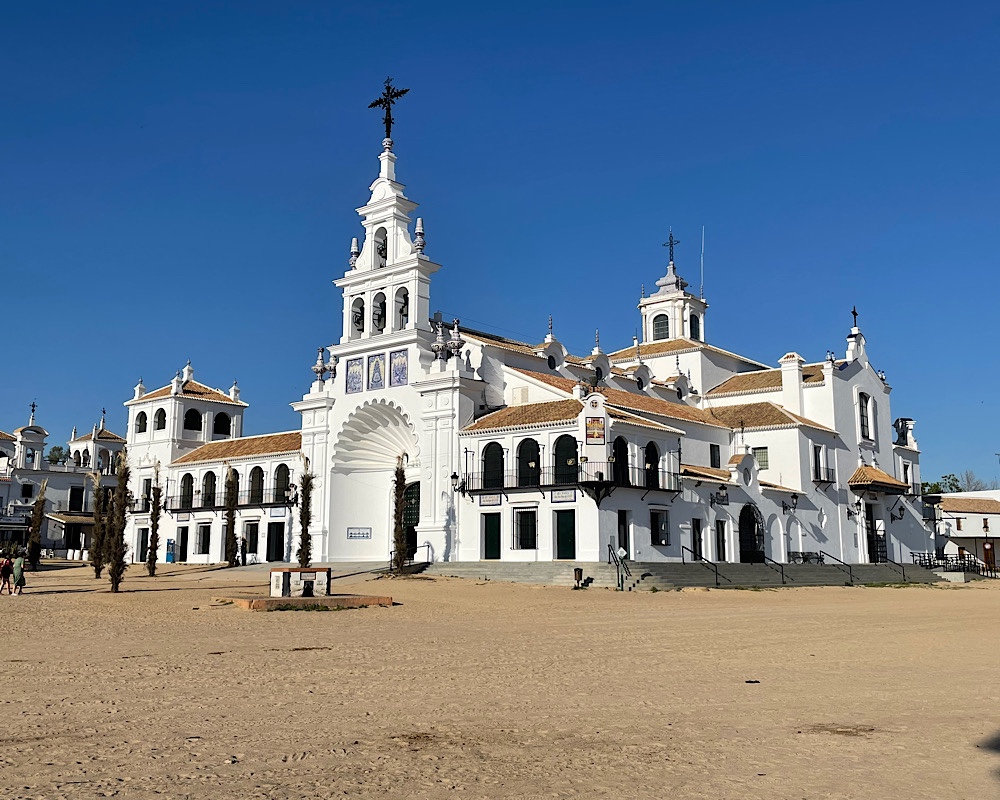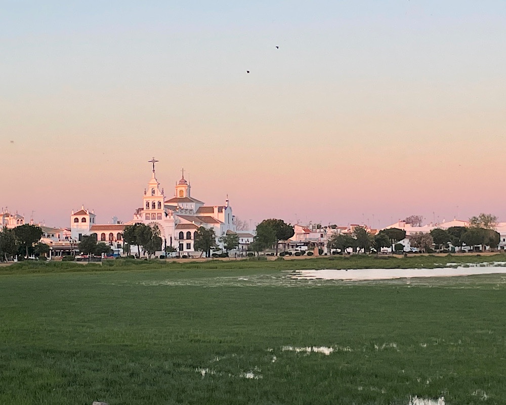 As soon as the sun dipped low enough we ventured into El Rocio. It is famous for the annual pilgrimage which attracts a million people each year. It is a curious place, with the wide sandy streets and old moorish style buildings. The Ermita del Rocio is the landmark church around which the town is formed right on the edge of the Doñana National Park overlooking the Carco de la Boca. Where the sandy dusty streets of El Rocio incongruously sit alongside the large green area of wetland filled with flamingoes and wading birds and wild horses. There are horses everywhere in town with tie up posts outside all the restaurants true cowboy style.