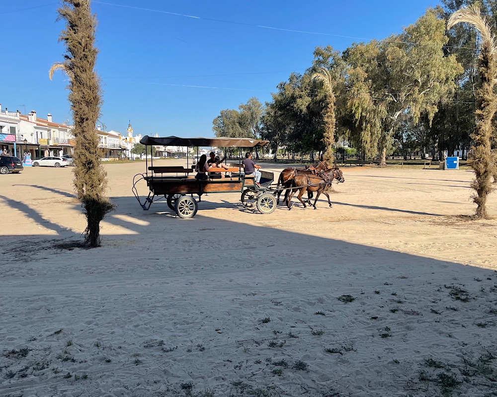Therefore, we were twitching to get on the road again. We have the potential to have to return to the Algarve in a week, so we opted to pop just across the border of Spain to El Rocio, another recommendation from my friend Amanda. It is somewhere which regularly appears in Motorhome Facebook posts as the centre of town in the midst of the Doñana National Park has no tarmac roads only sand and looks like something out of a cowboy film.