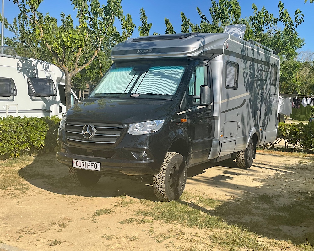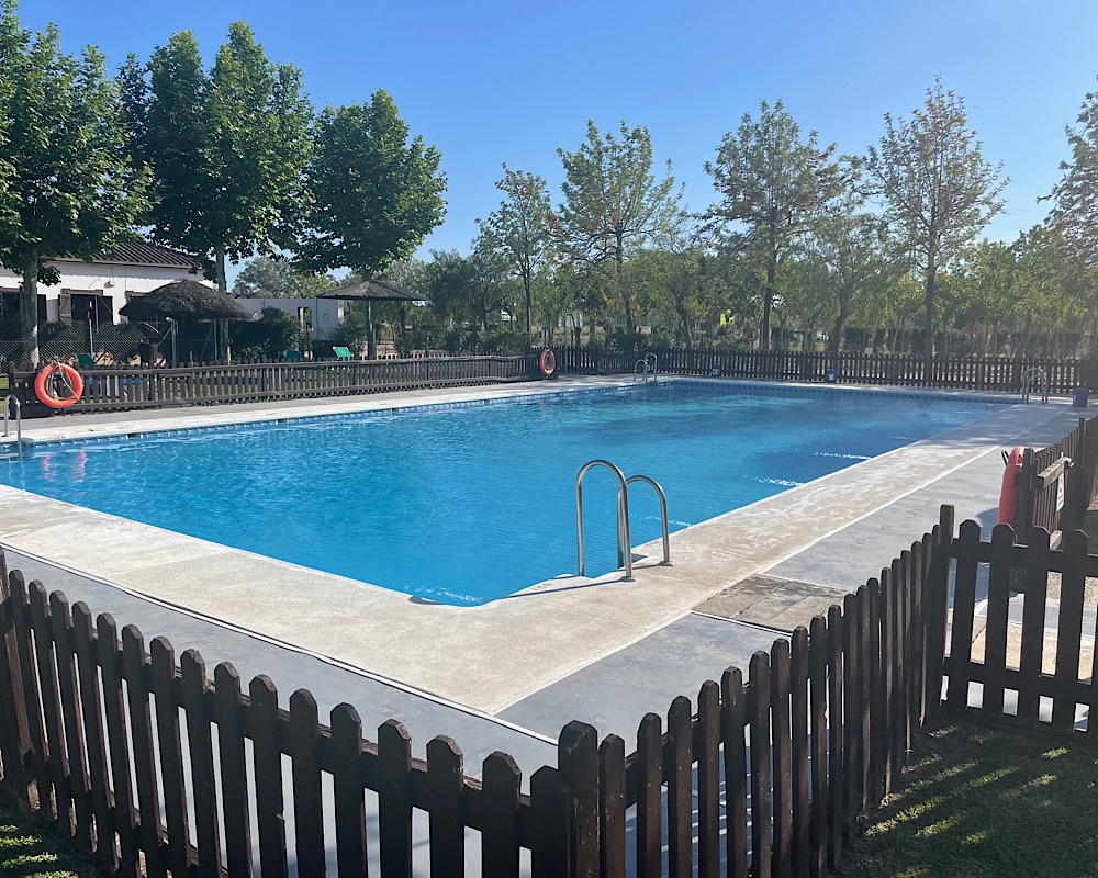 Temperature has reached Scorchio here now at 33 degrees, so we opted for the campsite with the swimming pool instead of the dusty free aire in town. So we had a stop off to Decathlon in Huelva and bought jodhpurs and swimming goggles. We arrived early afternoon and had a lovely salad for lunch before hitting the pool and swimming a fantastically refreshing half a mile 😁😇