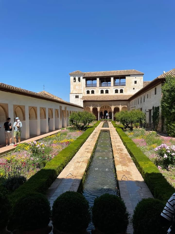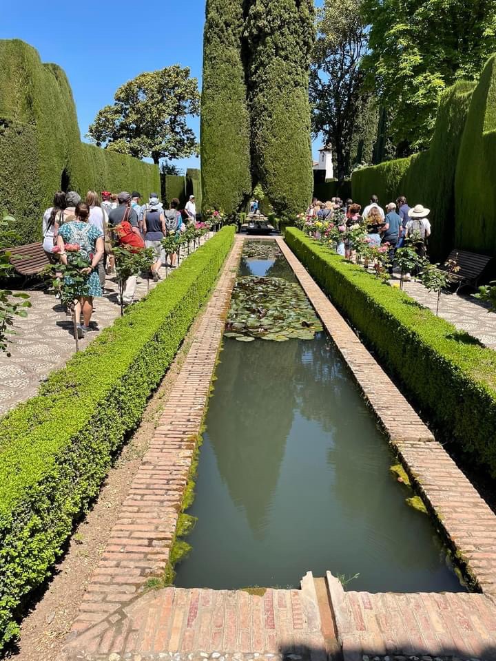 We first toured the external gardens which had originally been vegetable gardens when this Moorish fort supported an autonomous community in defence of the many internal political battles and eventually a two year stand off against the Catholic King and Queen of Spain. Nowadays the gardens have been replanted with roses and other fragrant flowers following a 19th century renovation. Next we went into Generalife, or the “Architects Garden”. Our guide explained that originally there would be no windows in the walls and that the garden was a place for calm where the five senses were exercised. If he said that once, he honestly repeated 6-8 times as we walked round. He also held the mic so close to his mouth that he was deafening with the volume turned right down on our head pieces 😩🙄