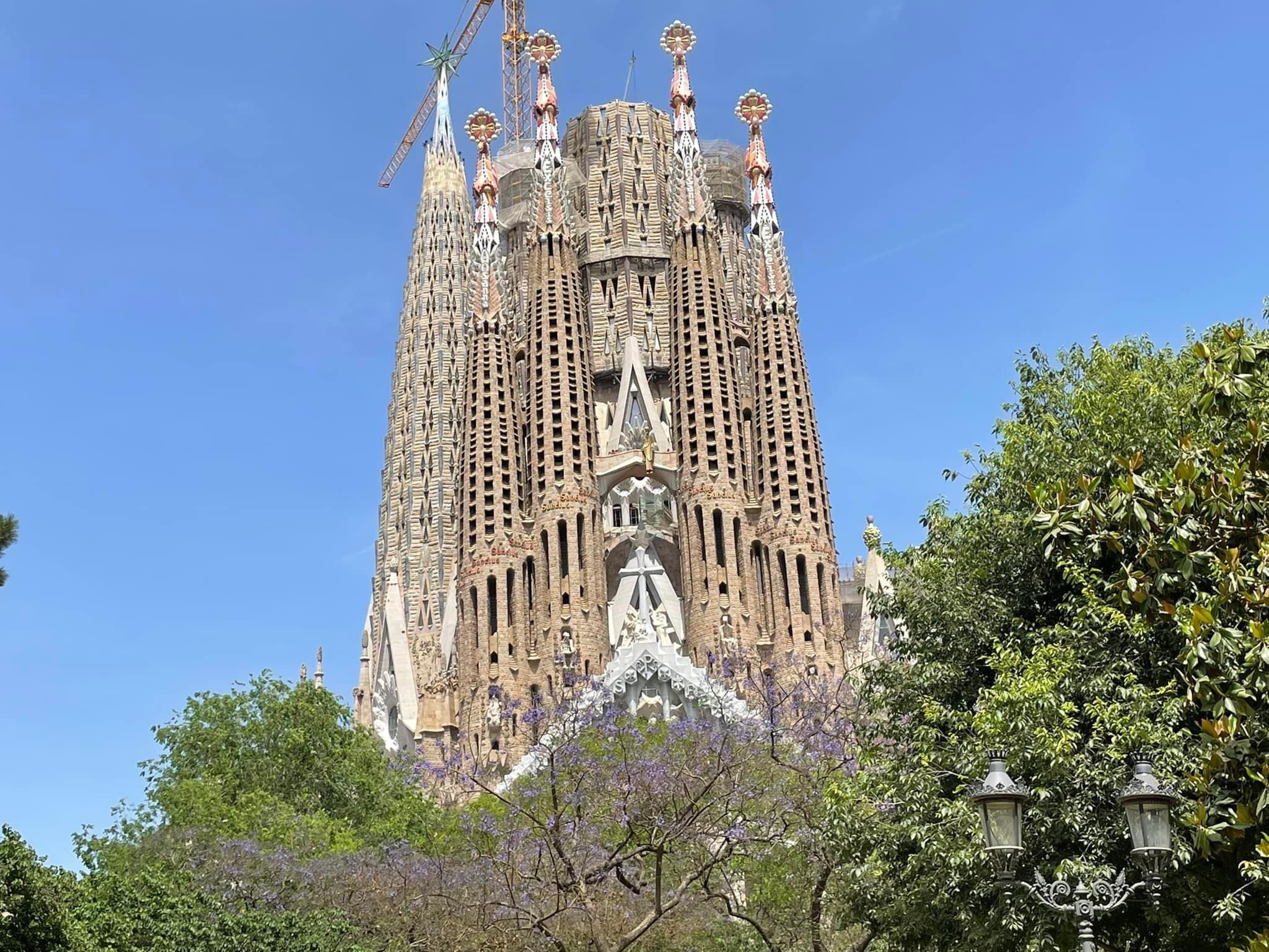 Finally after a few rest / water stops for the girls we made it to La Sagrada Familia, which I had always planned to visit in Spain. Anyone who has ever read Pillars of the Earth by Ken Follett or Sarum by Edward Rutherfurd cannot fail to be fascinated by the often 100 year plus construction of a cathedral, whether you are religious or not. The Master Mason / builder or his son who often takes the work on never manages to see the work finished. La Sagrada Familia is the only modern day example of that I am aware of, that I will be able to see in my lifetime and despite advances in construction it does not seem to be going any quicker than in medieval times. Gaudi, the Barcelona born devout architect started work in 1882, devoting 43 years to his life’s work to his holy mission. At his death only the crypt, apse walls, one portal and one tower were finished. In 1936, anarchists burned and smashed the interior and all the models to build it. However work restarted in 1952 and (optimistically?) it is due to complete in 2026. However based on the sketches of the finished product there seems to be quite a few (10 apparently) towers to go. It is certainly spectacular, a modernist gothic cathedral, if there is such a thing. There are apparently moves since March 2000 to canonise Gaudi, so clearly he is beloved in Barcelona. Although I gather due to the loss of the original models, controversy reigns as to whether this project really represents his work anymore. No government or official church funding is used to fund the build, which cost €18M in 2009 alone, plus €36M paid to the city authorities in 2018 for a belated building permit after 136 years of construction (source Wikipedia). I gather all is now funded by tickets sales and private donations. Fascinating to wonder if and when this apparently bottomless public project will ever be finished and if we will live to see it. I did not get to go in as we had the dogs, but will return one day perhaps when they have got a bit more done 😉😂