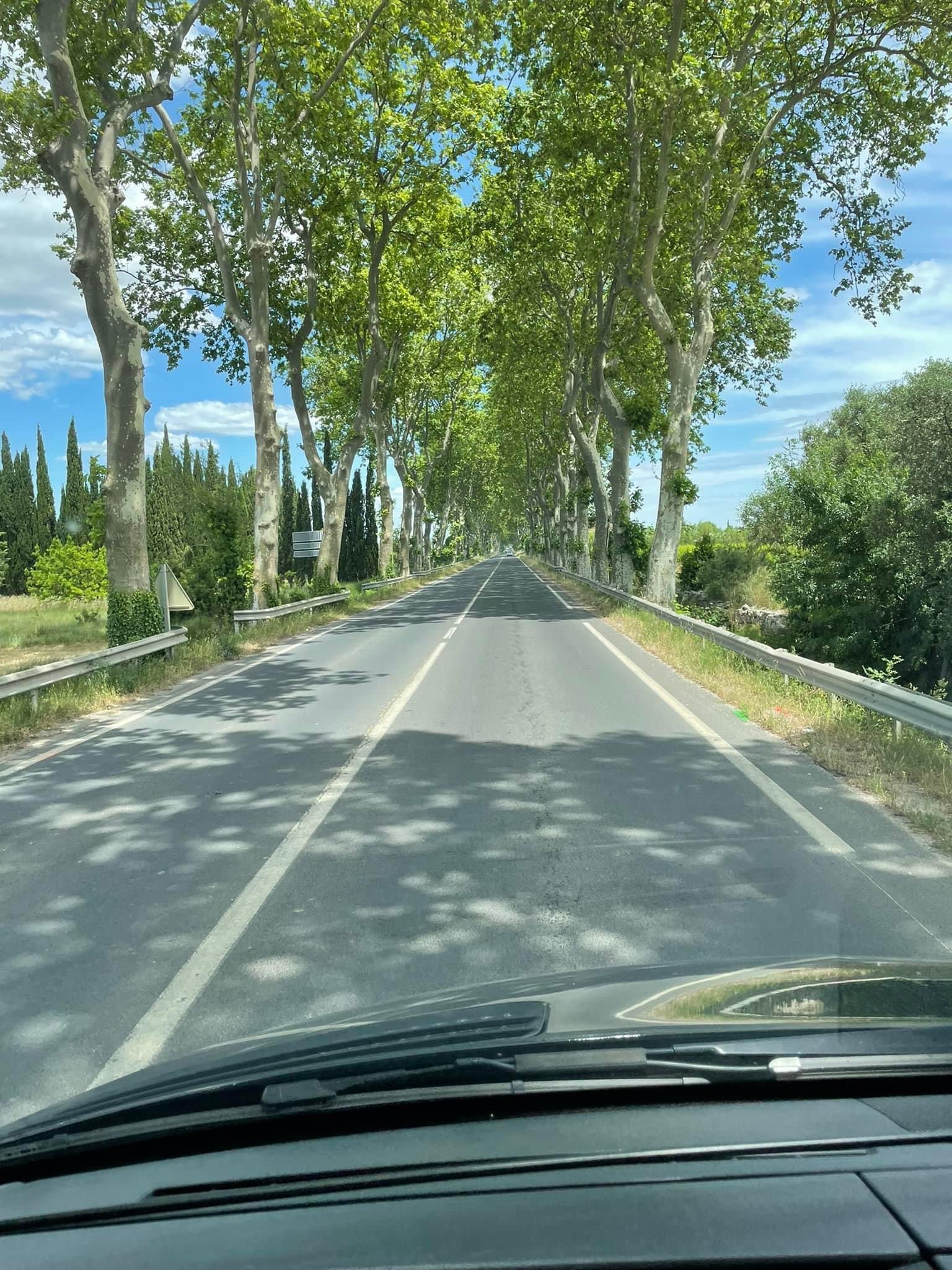 We drove on toward Aigues-Mortes our destination for the night. The cloud has now cleared and the dash was showing 28.5 degrees, it was 13.5 degrees C in Lagrasse this morning and only due to reach 22 degrees today. We gladly passed Palavas-Les-Flots, one of our least favourite stops from our last trip. We travelled between inland seas and the Mediterranean coast, looking at flamingoes grazing. As we approached Aigues-Morte we started to see some beautiful gray horses. I guessed they were Camargue horses from my recollections of my childhood horse breed books, not realising we were in that area, now wishing I had planned in some more time for riding while we are here.
