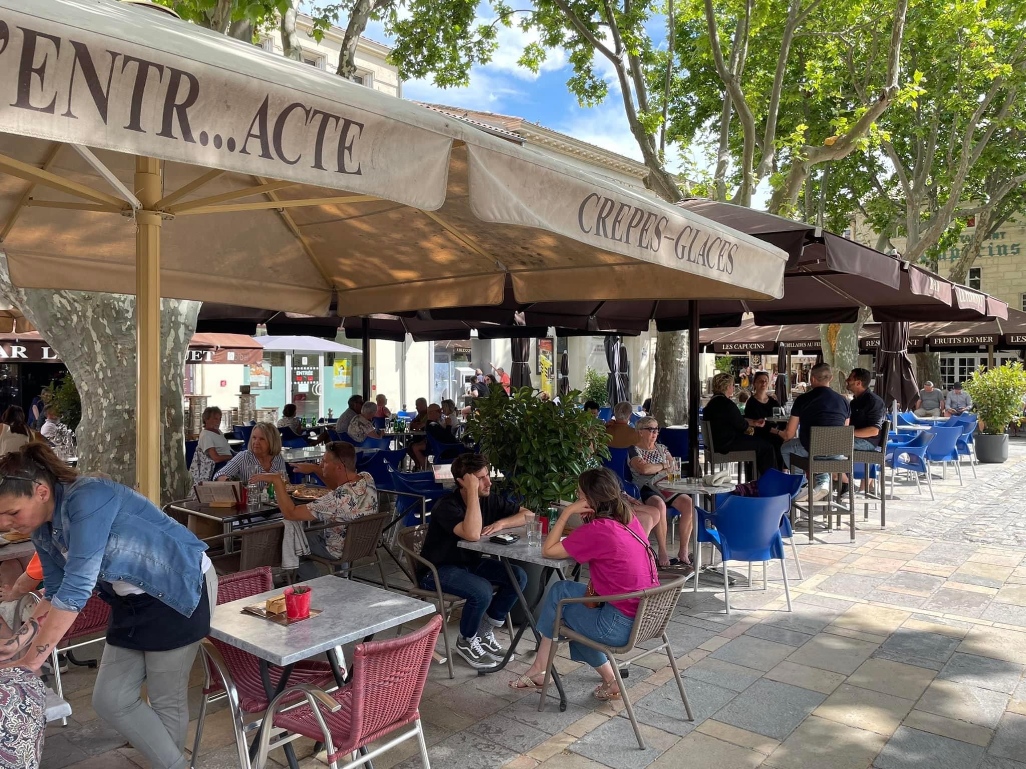 We entered the town through one of the many large gates and made our way through the lovely cobbled streets. The town was thronging with people which seemed a shock after a nice couple of quiet days in Lagrasse. We made our way to Saint-Louis square where the buzzing shaded bar seating drew us in. There are lots of nice non-tat shops and restaurants plus walks around the ramparts etc. However, it feels like we have fitted quite a bit in today and for now we are happy to just watch the world go by for a while with a nice cool beer.