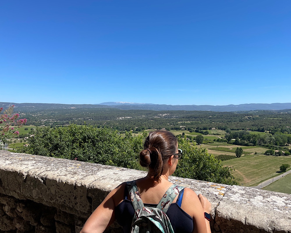 Ménerbes looked above us on the approached stretched across the hillside ahead. The honey colour stone village commanding views right across the Luberon. We were directed to an almost empty carpark by the beautiful carpark attendant. We selected a spot next to the only other motorhome under the shade at the far end and headed into the village to look around.