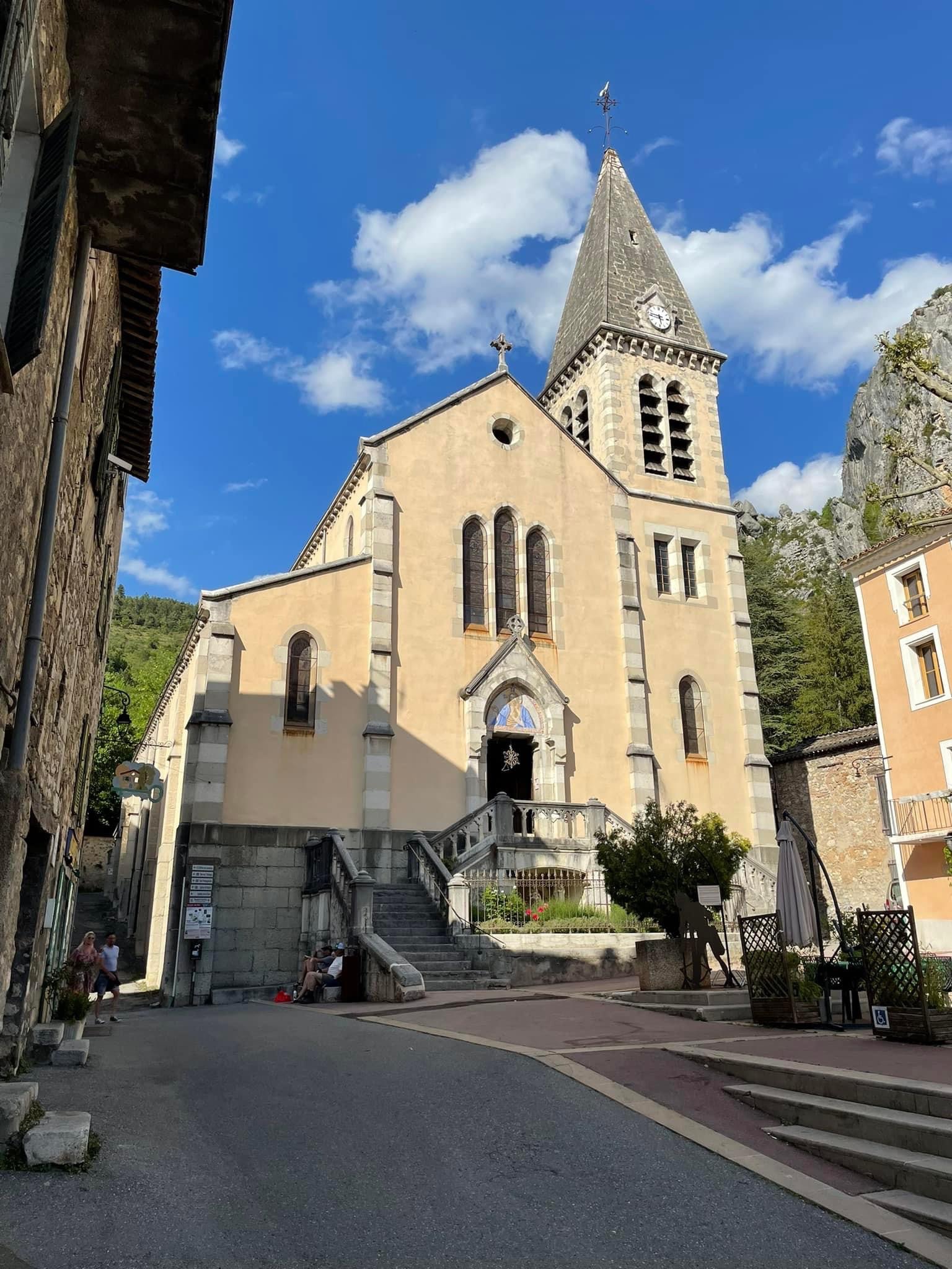 The next hour of driving through the switch backs, up the hills and down the valleys through the foothills of the Alpes was stunning. There were lots of lay-by type options to park up for the night but we decided to try out the small town of Castellane to see what the community was like in this area. I had read that one of the Things to Do in the area was to walk to the church on the hill. As we approached this was quickly vetoed it being more of a cliff than a hill!