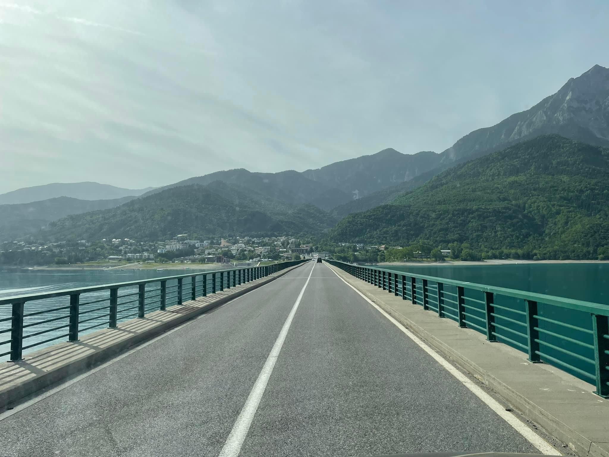 The drive here was nothing short of spectacular. Although we have both visited the Alpes skiing we have never visited in it’s beautiful summer exuberance. There were camper vans all along the way either driving or parked up in anyone of hundreds of campsites, aires or just lay-bys, all with stunning views. We stopped off at Lac de Serre-Ponçon for photos. 20km long reservoir which we crossed via the via a bridge. All the way along we kept seeing lovely places to stop off and wished we had months and not weeks left.