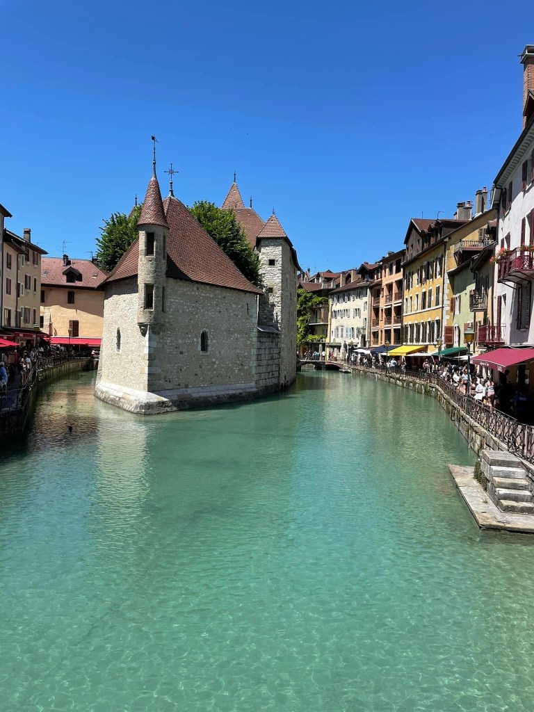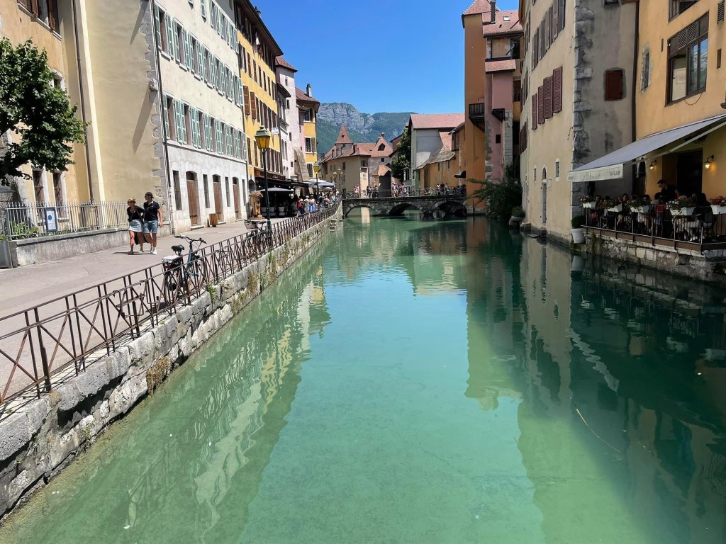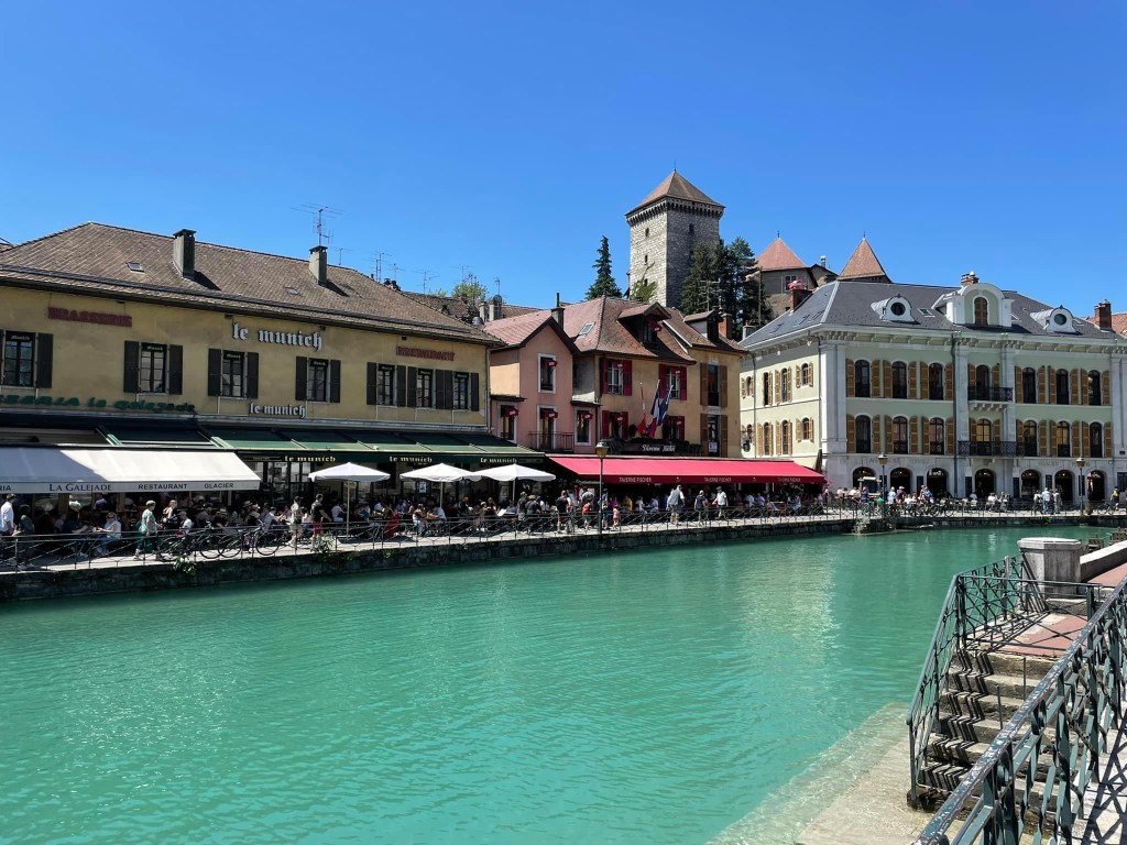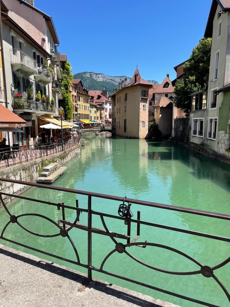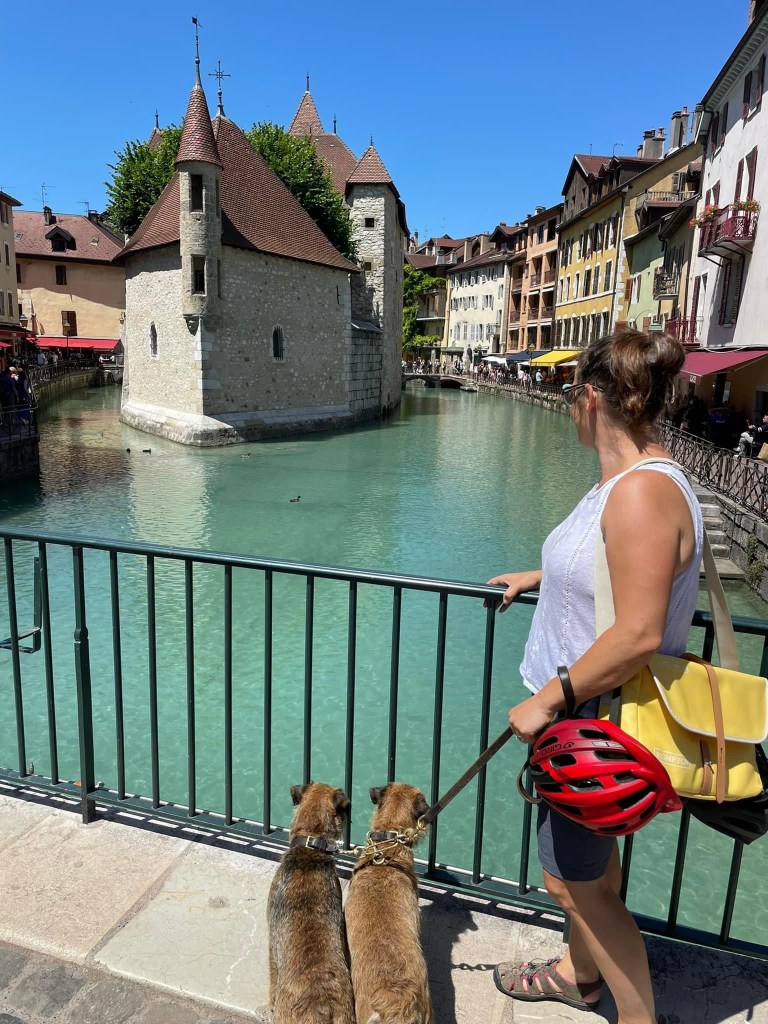 Anyway, we did manage to make it to the very picturesque Annecy. The cycle path taking us alongside the lake which was filled with people enjoying the glorious sunny weather and the amazingly clear turquoise waters of the lake. The cycle path takes you straight to old town Annecy, with hundreds of bike racks available to park up and explore.