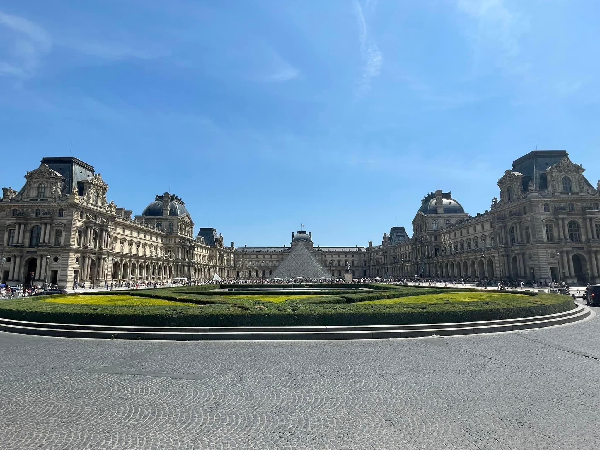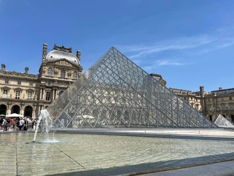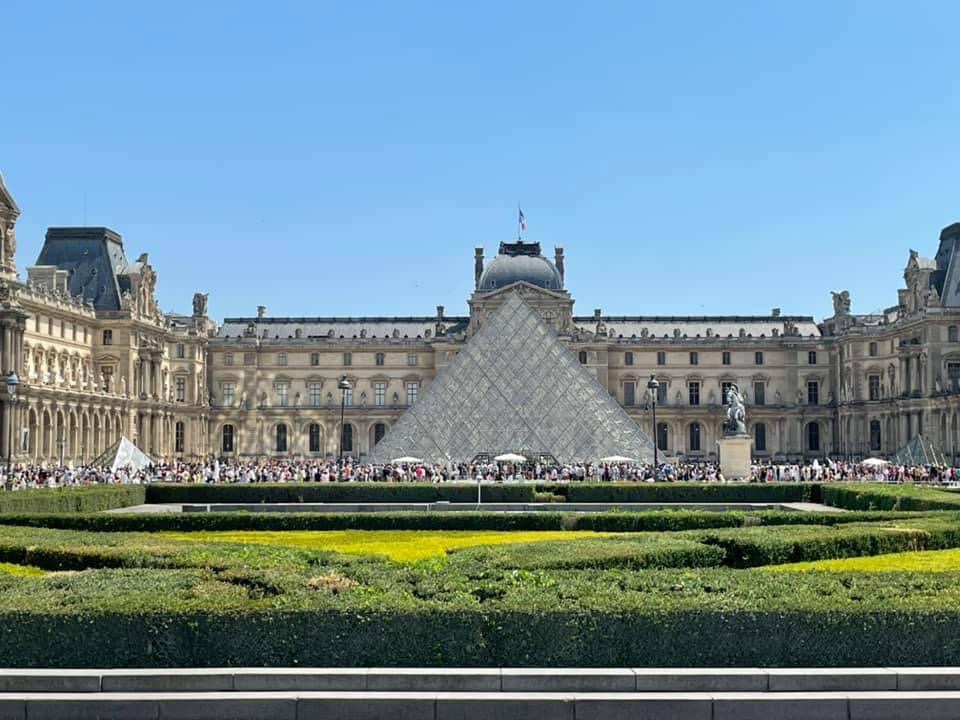 Next we stopped off at the Louvre. The queue for entry bending round the block in the direct sun would have been enough to convince us to move on even if we did not have the dogs. I guess 90% are there just to see the Mona Lisa and tick that box.
