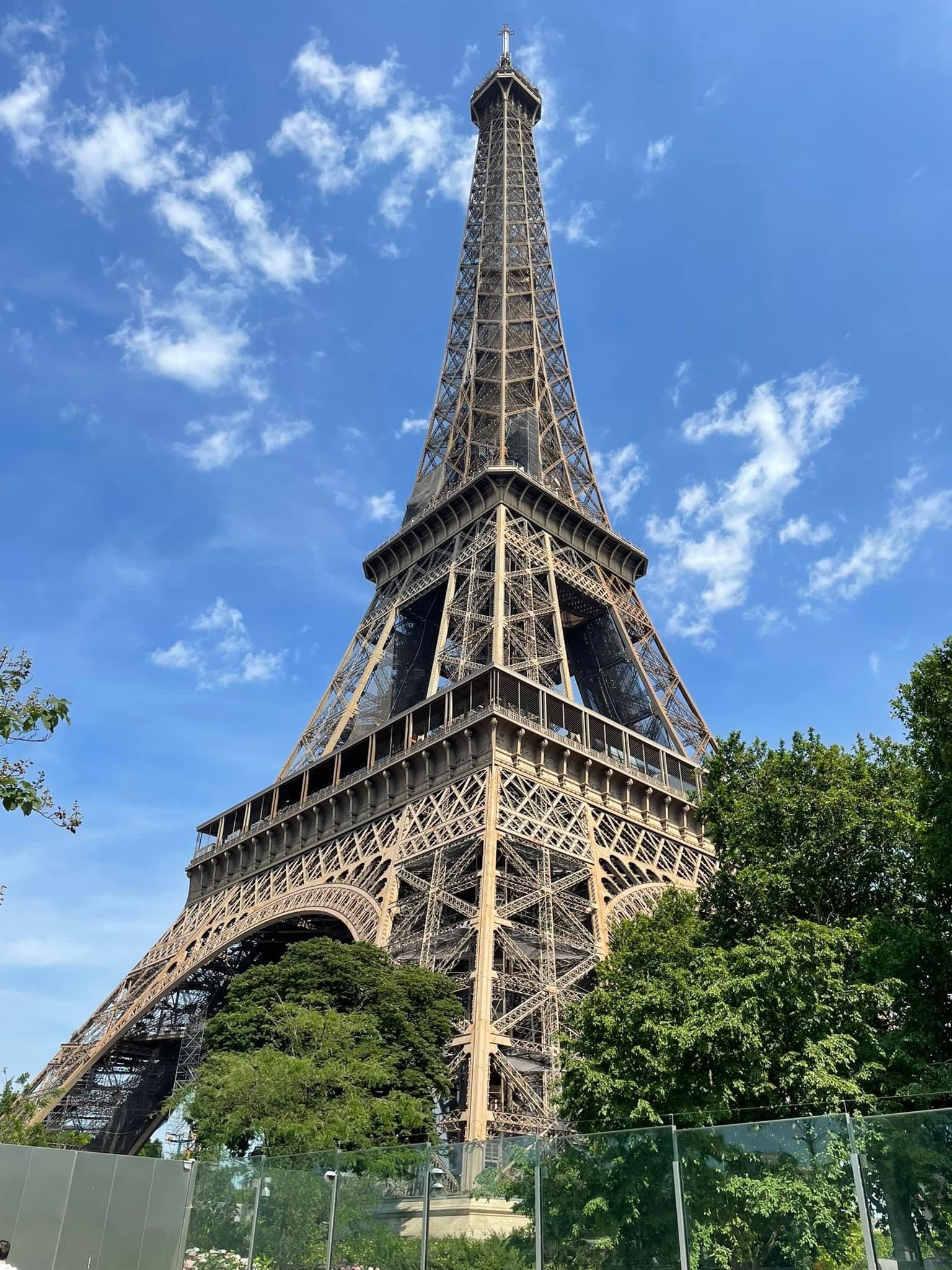 The sun was pretty strong this afternoon and it was a relief to get a breeze heading up river. Though you had to pick your spot on the glass topped boats. It was cool to arrive at the Eiffel Tower by boat. These days it is surrounded by a big fence with pay for entry, though Kev remembers walking freely underneath it in years gone by.
