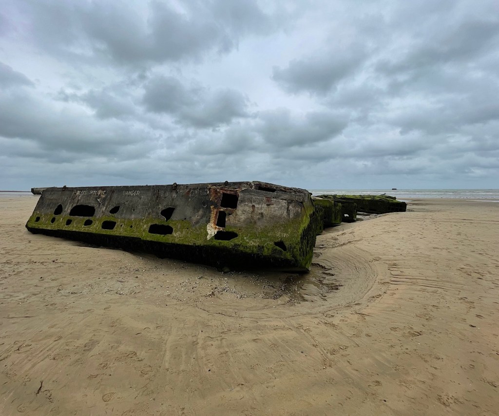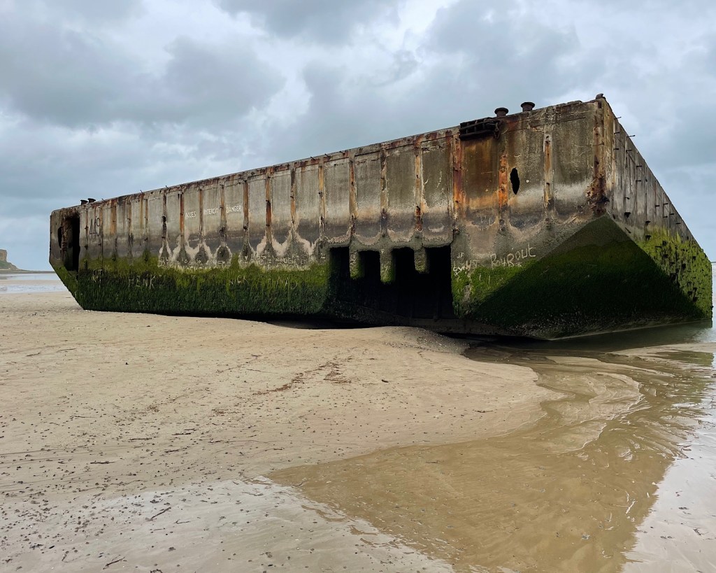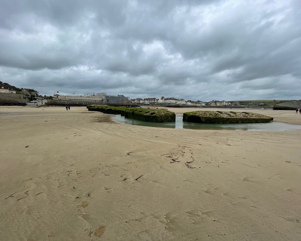 As it happens, this all worked out fairly well as it meant we managed to time going down into Arromanches at low tide when the closest Mullberry Harbour structures as left exposed by the retreating tide. Only when you can see people walking alongside them do you realise the size. I guess they did have tanks, trucks etc to unload onto them. These remains feel somehow much more of a connection to the events of 1944 as you know that they are in-situ and original. Whereas some of the artefacts sourced locally for displays are often examples for elsewhere etc.