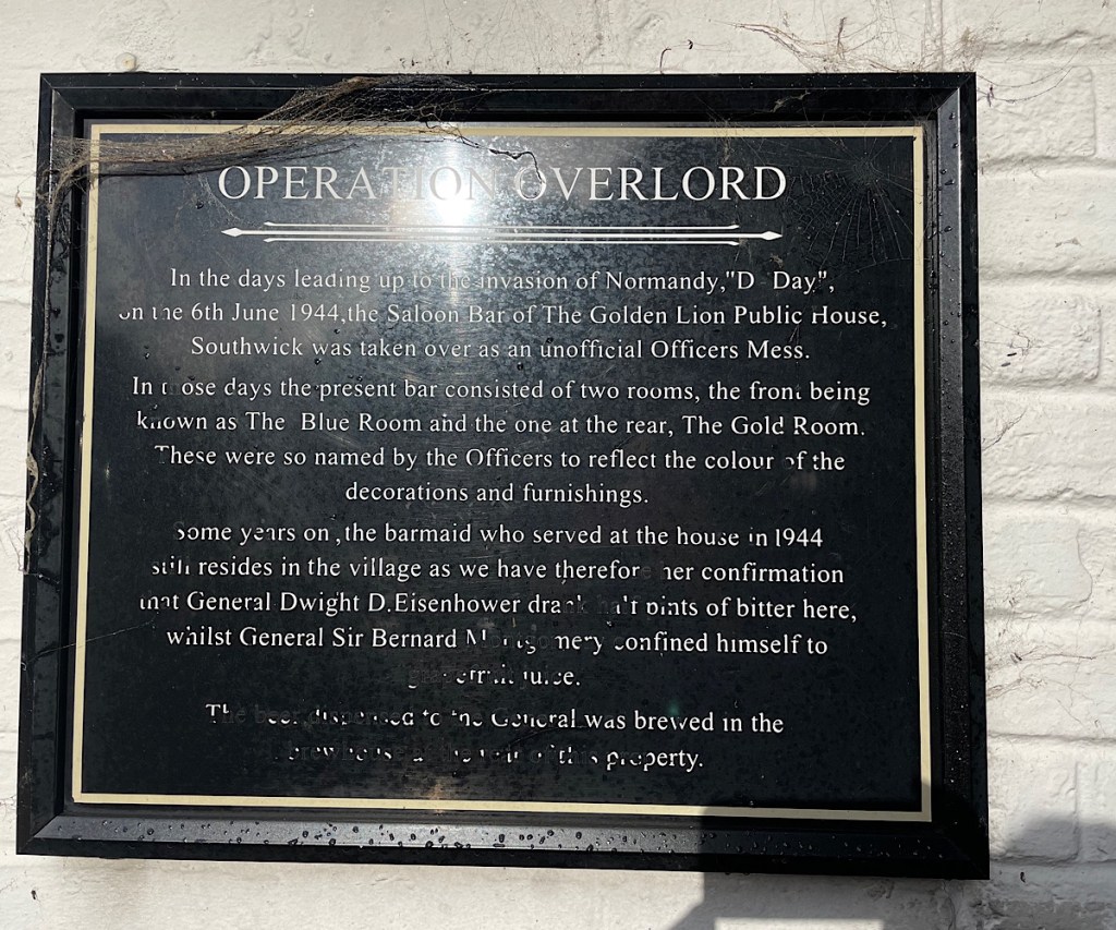 Tonight we are booked into a pub stop in The Golden Lion at Southwick, near Portsmouth for when we get off the ferry around 5pm rather than try to drive the 5 hours plus to Cornwall. Southwick was apparently the home of the Strategic Command Centre for DDay. So by pure chance in terms of our booking we will be staying at the pub which was the “unofficial officers mess” for Monty and Eisenhower. So it feels like we will also be completing our D-Day tour quite nicely whilst also getting to enjoy some real ales. Win win 😁