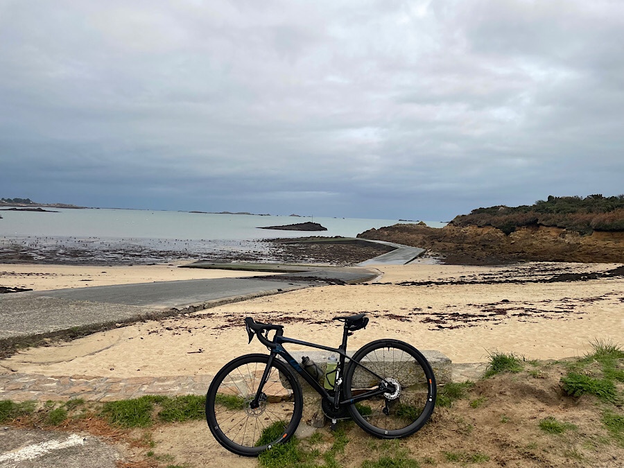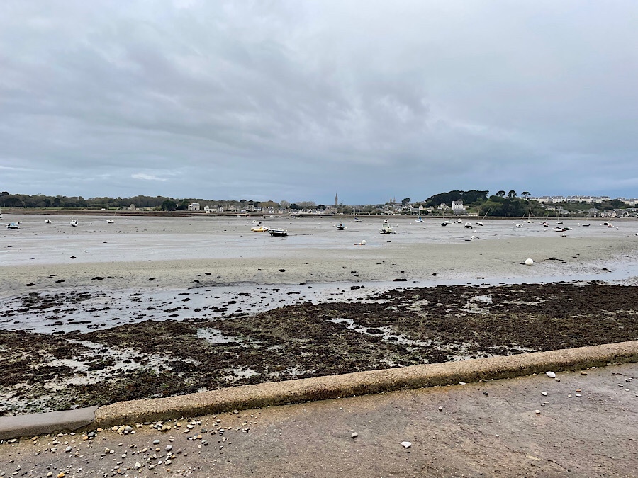 This morning started early as it looks like poor Lizzy had the gastro enteritis which Lola was treated for a week before we set off. Kevin was therefore out with a head torch and the dogs at 06:30. After a cup of tea while we waited for daylight we decided we may as well set out for the day. It was a pretty grey and dull day, but I opted for a 20 mile cycle loop round the headland to Carantec. Kevin meanwhile set off with the girls for a lovely 3 mile+ beach walk around Îlot Sainte-Anne.
