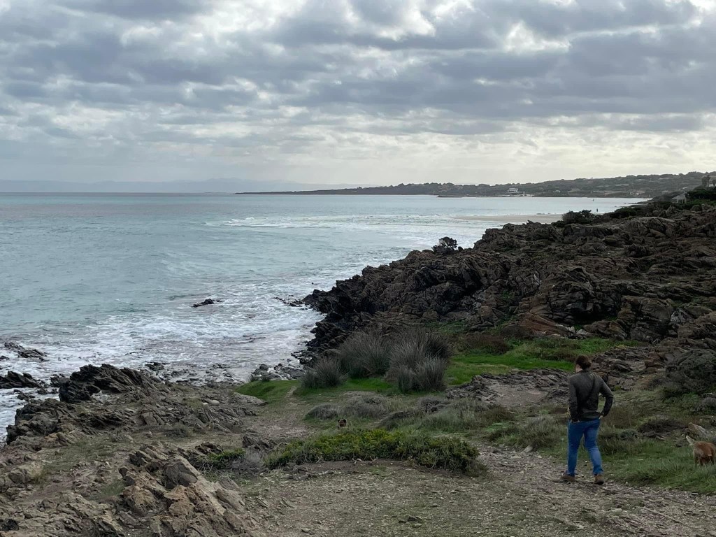 Kevin is currently reading the 5th volume of Churchill’s war diaries, which by coincidence recently covered the invasion of Sardinia. Visible on the ridge behind us are 16 pillboxes guarding the shore. It is amazing how these remnants remain even now and show us how difficult a task that invasion must have been.