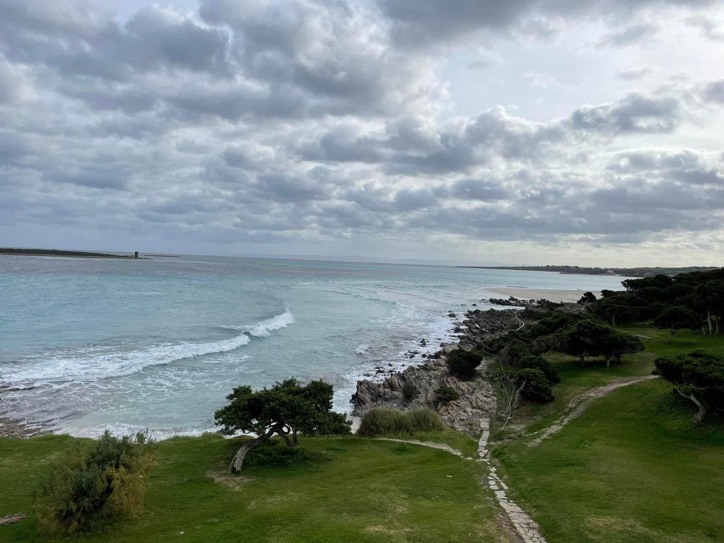 After a leisurely breakfast we decided to take a tour of the peninsular to north. We visited La Pelosa beach first, a famously photogenic spot. The benefit of visiting this time of year was we could park up right in front and have the place almost to ourselves. However, we did not quite get the beautiful turquoise waters of this spot in the summer and all the restaurants and bars here were closed. The Isola Piana islet north of here creates almost a lagoon with the mainland Sardinian coast with a stone watch tower guarding the shallow channel.