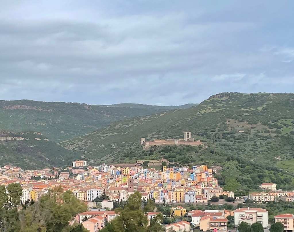 We drove out of Bosa only to see the perfect view / photo of the lovely coloured buildings below the castle which we had seen on all the guides coming here. We didn’t quite capture it yesterday but now we were driving and we had nowhere the stop. We have not yet reached Italian driving status which apparently allows for stopping in the middle of the road to drop off passengers and parking within three paces of anywhere you wish to visit whether that be in the middle of a road junction, traffic lights etc. However, I did my best out of the window as we drove to get the picture.
