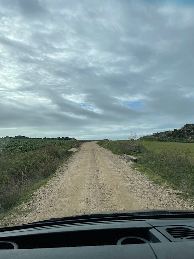We followed our sat-nav up over the hills, through some sometimes worryingly small village roads and eventually onto a track where we ran out of tarmac completely. Now, there is some very rough road surfaces on the island but usually there is some tarmac between the holes. We were happy enough being in a 4×4, however, a little further along the track was blocked by a tractor clearly busy at work, obviously not in a hurry to let us by. We were near somewhere handy to turn round and had found another slightly long route by road instead, so doubled back.