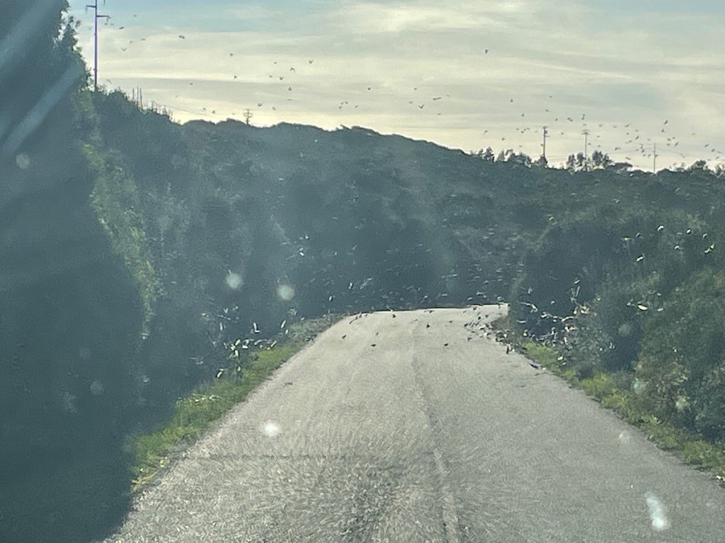 There is again the occasional small farm between small villages but otherwise completely unpopulated. This seems to have a great impact on the bird life. We have seen lots of kestrels and a few sparrow hawks. We even had a little black and white bird who tapped at our windscreen every morning. Today we saw the biggest flock of starlings we had ever seen which at one point mobbed the road ahead of us as we approached.