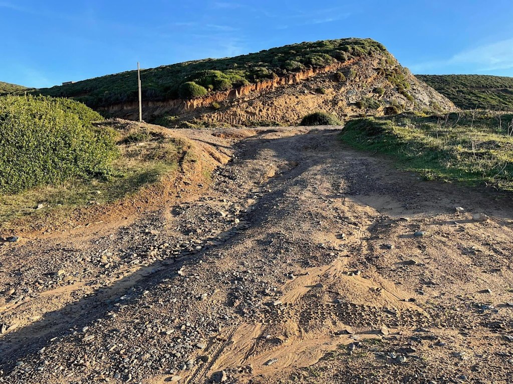 Finally we make it through a small village, which sadly seems all but deserted with lots of shuttered windows, probably holiday homes. Using our 4×4 we were able to take a track to a park up right by the beach. There is just us down here, plus one normal camper van at the top of the slope.