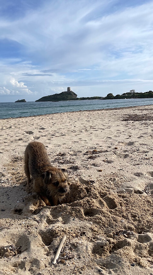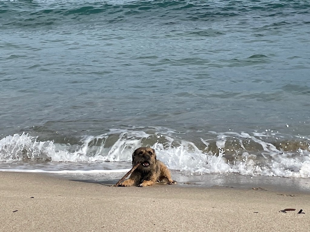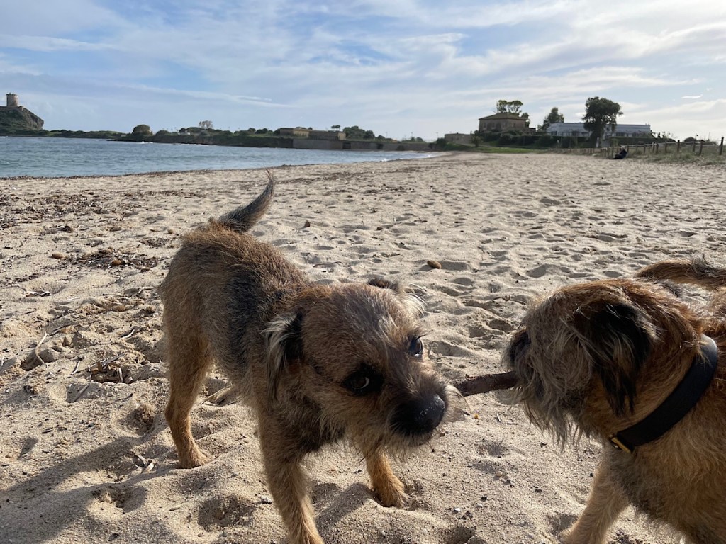 All stocked up with fresh supplies we had a lovely healthy salad for lunch. I decided to take the girls for a stroll on the beach afterwards to stretch our legs and quickly spotted the beach bar had also opened for the weekend complete with deckchairs. After a bit of digging and stick chasing we decided to get Kevin from the van, put some shorts on and join in 😎