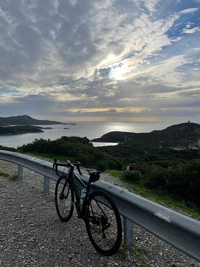 I did not make it all the way to Porto Teulada which would have been a 76 mile round trip, but I managed 40 miles and got some nice photos and a good workout. The roads were quiet early on a Saturday morning and there were some beautiful colours from the morning sun over the water. There is another tower at Chia like Torre del Castellazzo o di Sant’Efsio and what looked like a lighthouse further along the shore. Another lovely quiet and unspoiled bit of coastline. I passed a number of other groups of Italian cyclists as I head back who all offered a wave and a “Ciao” as we passed.