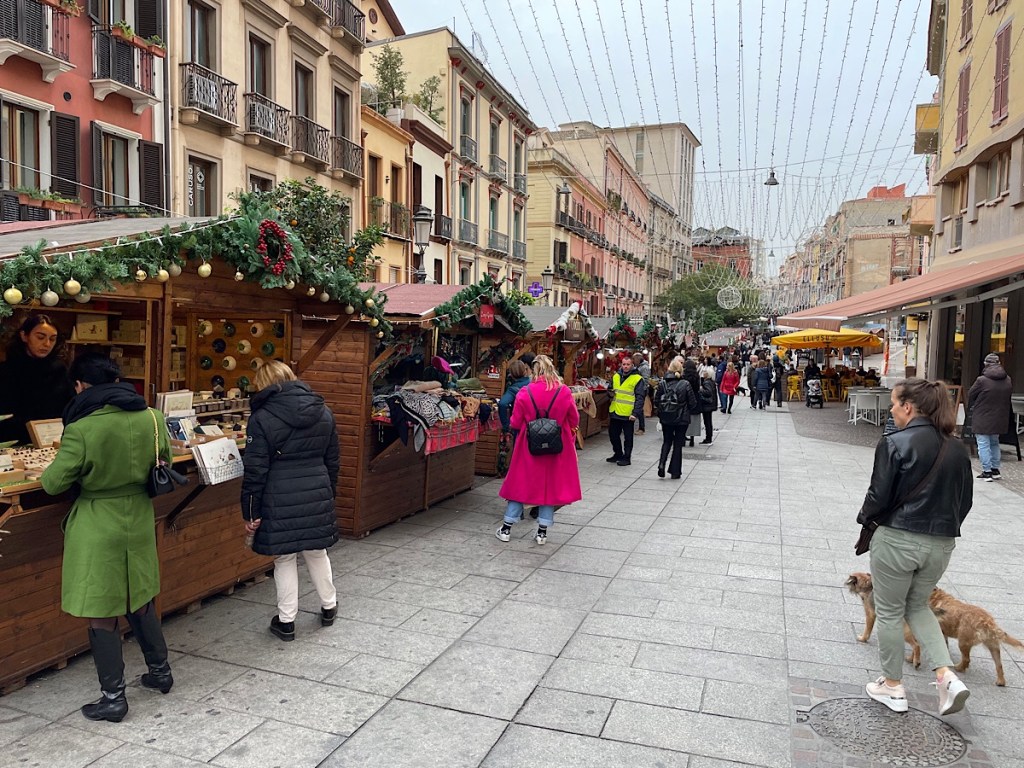 So we got to indulge in Aperitif s in Cagliari with the hoards of Christmas shoppers last night. The streets were filled with people and lit up with festive lights, it was a lovely atmosphere. It seemed everyone was drinking Aperol in the many restaurants and bars, so we thought we should join in with the cocktails. After a day of food on the run, we were seduced by one of the Aperitif boards, loaded with meats, cheeses, focaccia etc as we saw one delivered to a neighbouring table. We were then too full to go for a full dinner šš. So we had some more cocktails instead ššøš¹