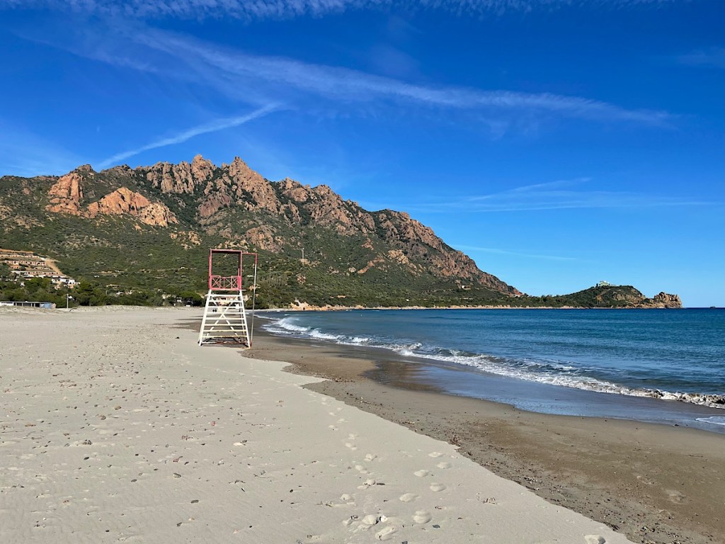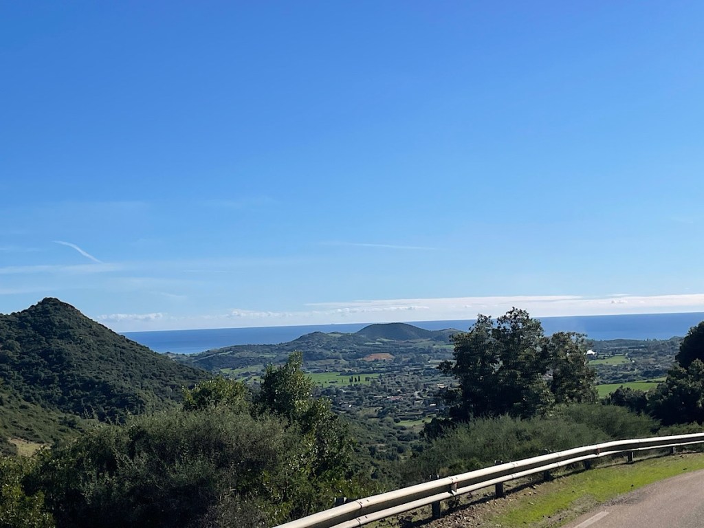 So we swung straight into our new routine today. I went for a 30 mile cycle ride this morning along the ex-SS125 toward Tertenia. Not along the SS-125 as that is a new, sometimes even dual carriageway, road complete with big concrete overpasses etc on which no bikes are allowed that runs alongside the old road. Obviously people must have know the number of the old route though, so why give the new road a new number? Just put ex- in front of the old one. The old ex-SS125 though is nice and quiet as all the fast cars are on the SS125 fast road… except for the Italian driver who came round the bend at me on the wrong side of the road but thankfully I had just enough room to get inside him by tightening turn. Italian drivers really are as bad as they say.