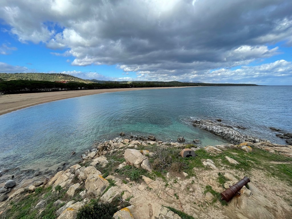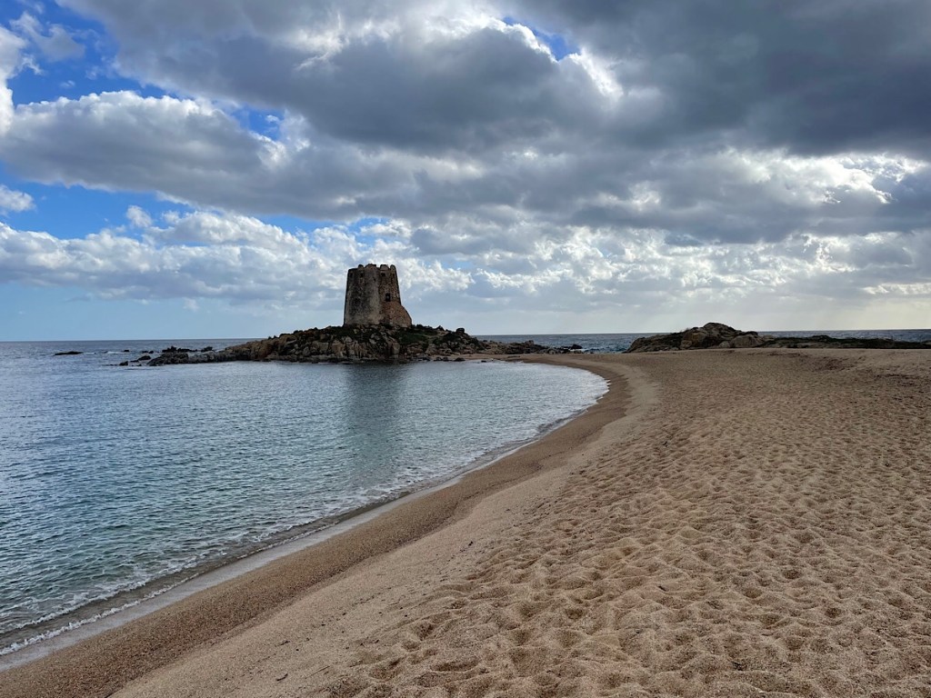 Bari Sardo is a stopping off point north for some hiking planned tomorrow. It is a beautiful beach with obligatory Saracen-defence tower watching over the headland. There are a few other campers here mainly from Germany and many with small children. Otherwise the beach resort is deserted, so we had several miles of beach to ourselves when we went off to explore.