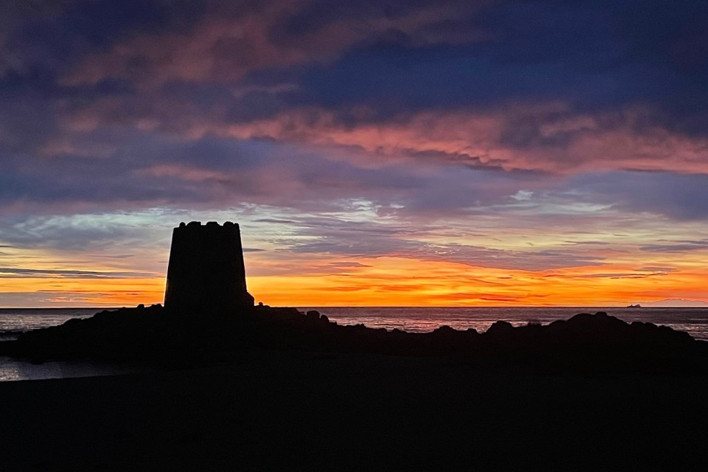 As we backed into the space I jumped out to check our clearance over the kerb at the back. Before we had even finished reversing, a local police car drove around the otherwise empty carpark to pass us! We decided this was a good sign though, as he did not tell us to leave and at least they are keeping a good watch. It provides some reassurance they are so vigilant, with all the reports of campervan break ins at the north of Sardinia.