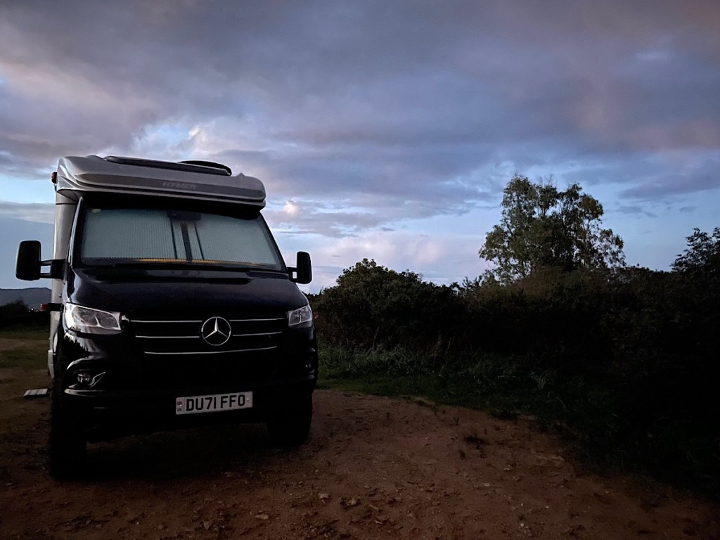 So just as the sun was setting we found a nice level spot on our own in a car park by the beach with lovely views. Looking forward to waking up here and seeing the views at sunrise.
