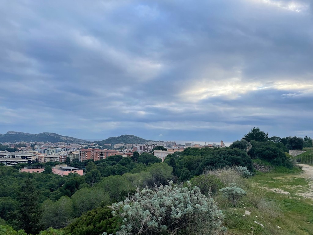 By late afternoon it cleared and we decided instead to walk with the dogs to Monte Urpinu which is just behind us to see the view. We went to the nearest gate which seemed to be locked but there was pedestrian access to the side so we carried on, there were signs about renovation works and there were Harris fences up etc so not really a scenic walk. It improved onto of the hill where we had good views out over the salt pans to the east by Poetto beach. However we then reached a fence and a padlocked gate so our walk was curtailed and we did not get to see the views over the old town.