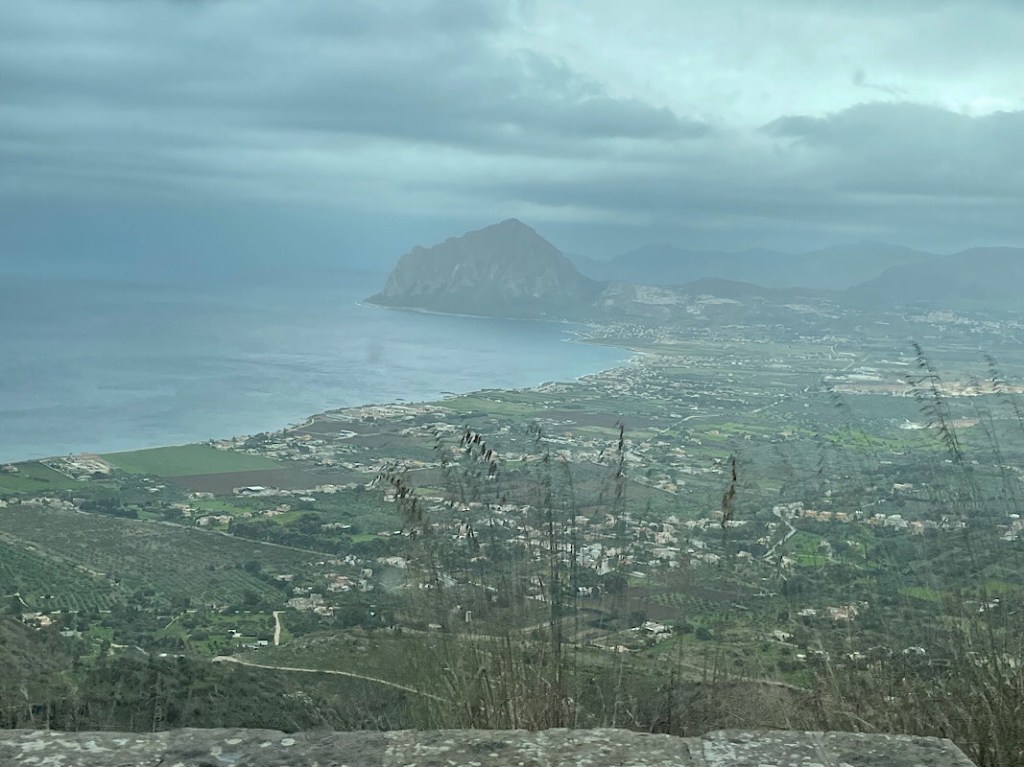 As it was only early afternoon, we decided to press on to Erice for tonight. A fortified town on the top of Monte Erice, at an altitude of 750m / 2460ft. Our parking spot is right at the top, although a cable car does link the upper and lower towns, we drove up. We enjoyed some magnificent views to the west of Capo San Vito, however, after we tried our first park up, where even with ramps we could not get level, the clouds and rain descended around us. We are now parked up in a panoramic viewing spot with two other vans by one of the city gates, but we can only see about 30 ft in front of us! Hopefully we will be rewarded by clear skies and a stunning view when we wake up. Although the switch-back route up the hill was pretty vertigo inducing, so perhaps not too vertiginous would be good!