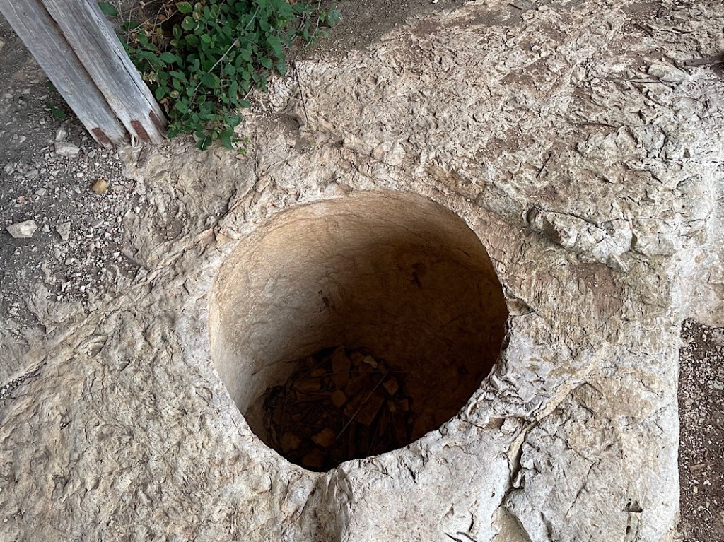 Our more inquisitive route up the hillside had us pushing through brambles on a narrow path that lead an assault up to the old city walls, just within which an original dwelling house carved out of the rocks could be visited, with what appeared to be the fireplace and well inside.