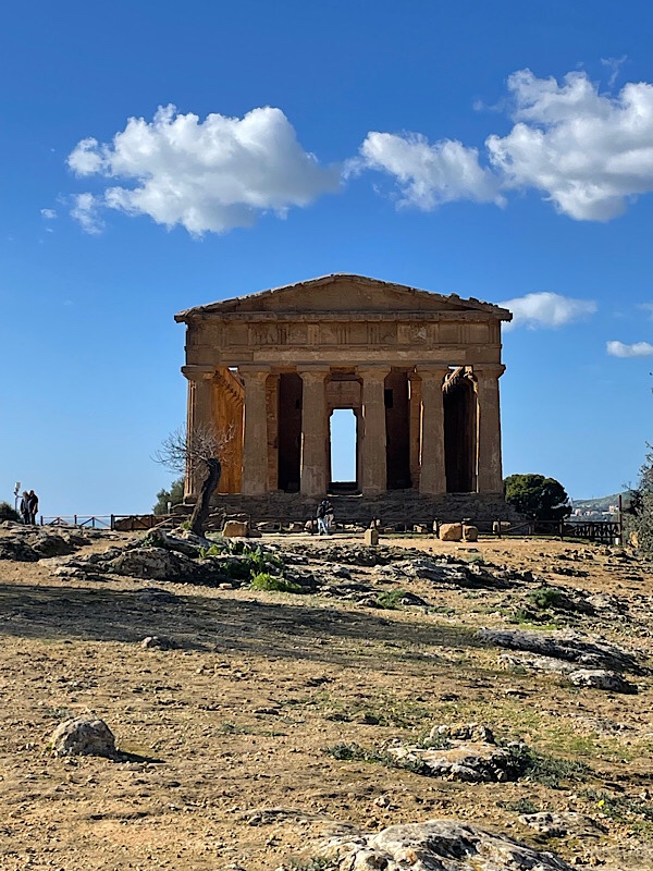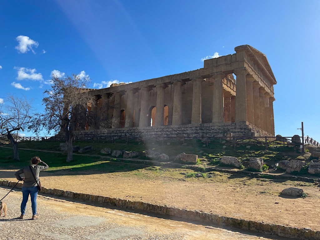 The site is large and we has a really pleasant walk in the sunshine which has thankfully returned today after two wet days. There were more visitors here than we have seen anywhere so far, however as it was a big site they were well spread out, you could still get a photo without crowds. Obviously we looked upon them with the slightly supercilious air of those experienced temple visitors who have done three days running of temple visiting. We refrained from asking them “where were you in the wind and the hail at Segesta and Selinute????!!! 😂.