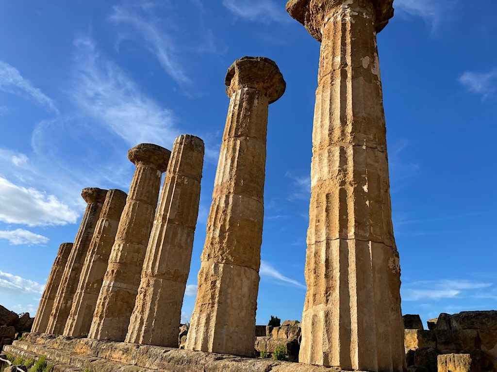 The Valley of Temples is what remains of the vast city of Akragas, founded by Greek settlers from Gela and Rhodes in 580 BC. The city went on to house 200,000 people and have a 12 km city wall with 9 gates. However, by 406 BC it was destroyed by the Cathaginians. The Romans seized control in 210 BC and renamed the city Agrigentum. However, it was not populated by the Arab, Berbers, Spanish, Egyptians, Spanish, Syrians or Persians that followed who settled elsewhere, so has not suffered the usual reuse ‘ revisions. However, it was pillaged for stone as late at 1780’s to build a nearby harbour.