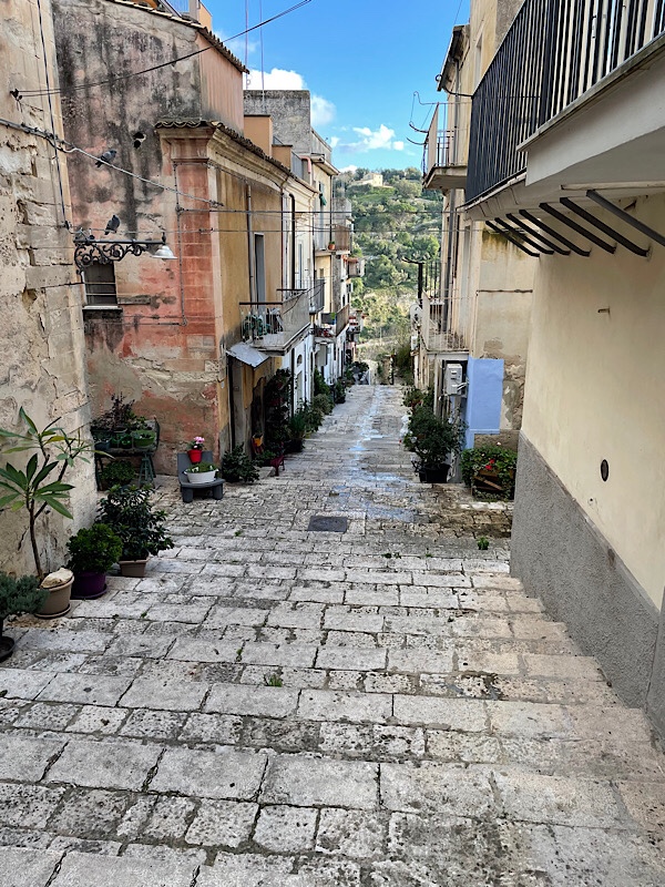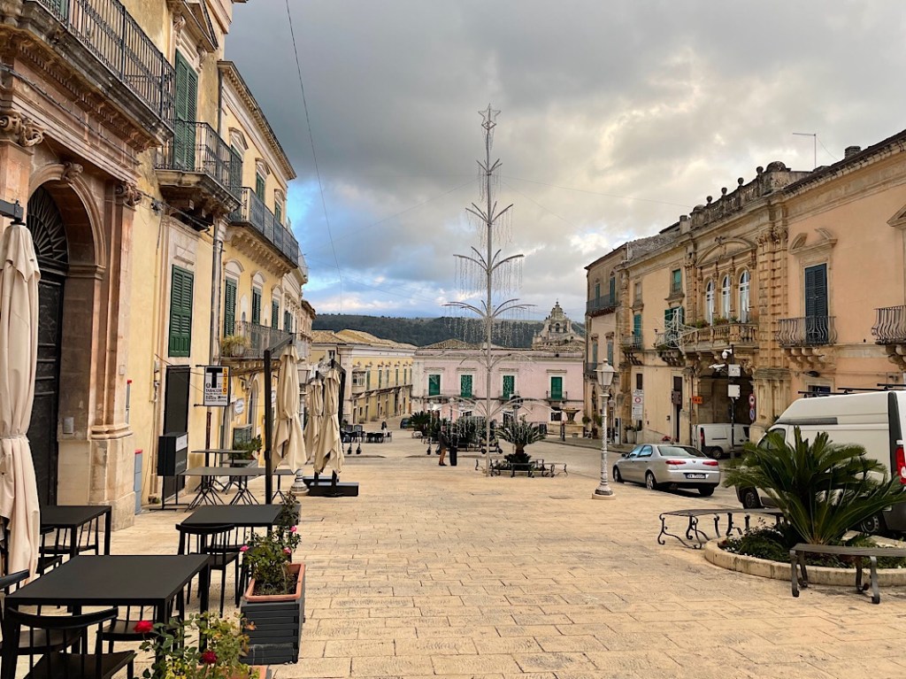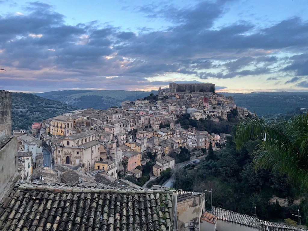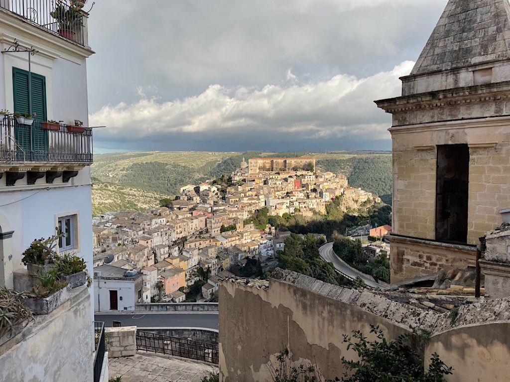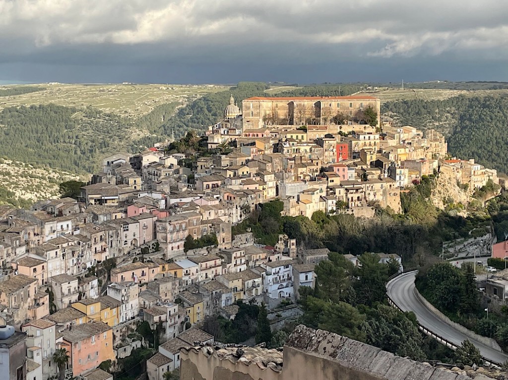 We left under the view of Agrigento temples, standing sentry over the road to the west. A fairly long drive west today and a little inland to the UNESCO protected area of Val di Noto consisting of 8 baroque towns perched on hillsides, of which we have randomly selected Ragusa to visit.
