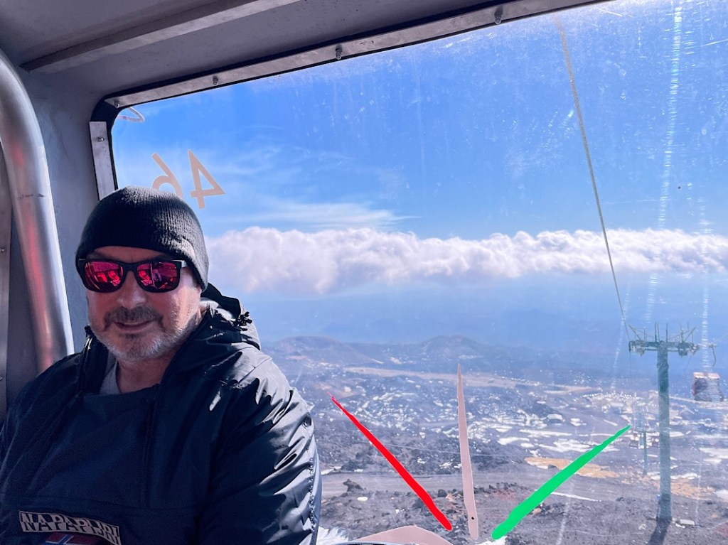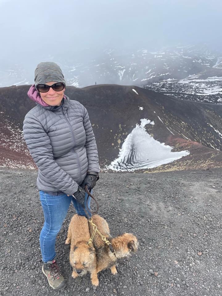 So we took the girls off for a tour of the craters, the lower is a gentle walk but has some great views to the hills and towns below. Typically, the clouds started to form as soon as we were out walking, however, it was pretty cool watching them swirl around us, as we were at the height of the clouds. The lower Silvestri crater from 1986 is relatively small. However, the upper crater from 2001 is three times the size, a bit of a steeper walk but giving great views down over the lower crater. Lola had great fun tearing around, Lizzy kept firmly on the lead due to her poor eyesight.